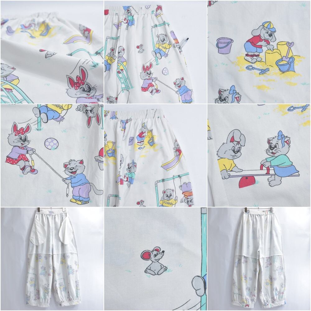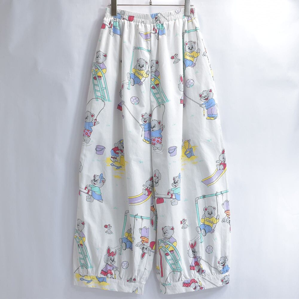 Remake ヴィンテージ テキスタイル リメイク バルーン シルエット イージーパンツ キャラクター アニマル柄 レトロ マウス キャット 裏地付き ビンテージ 古着 レディースW66〜112cm