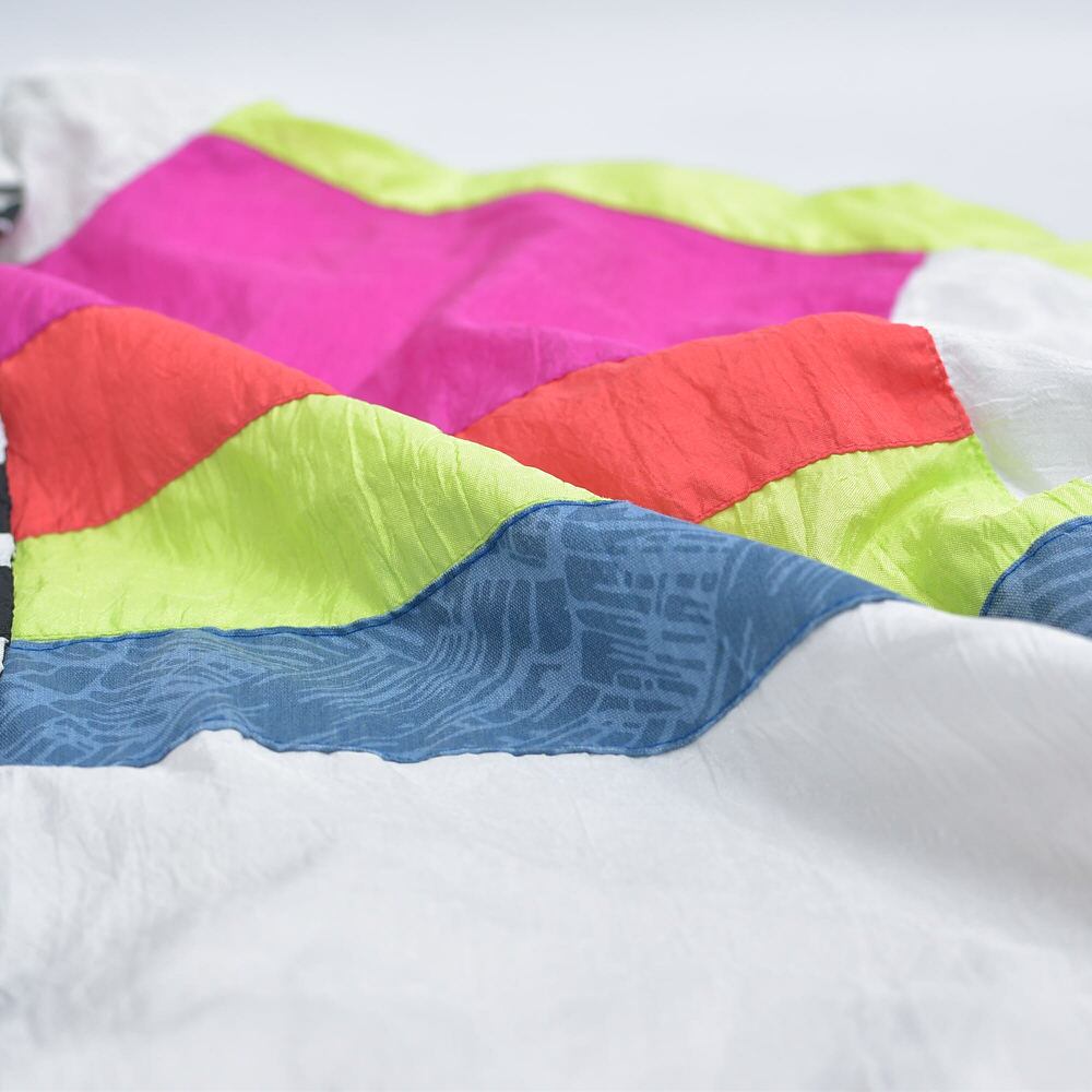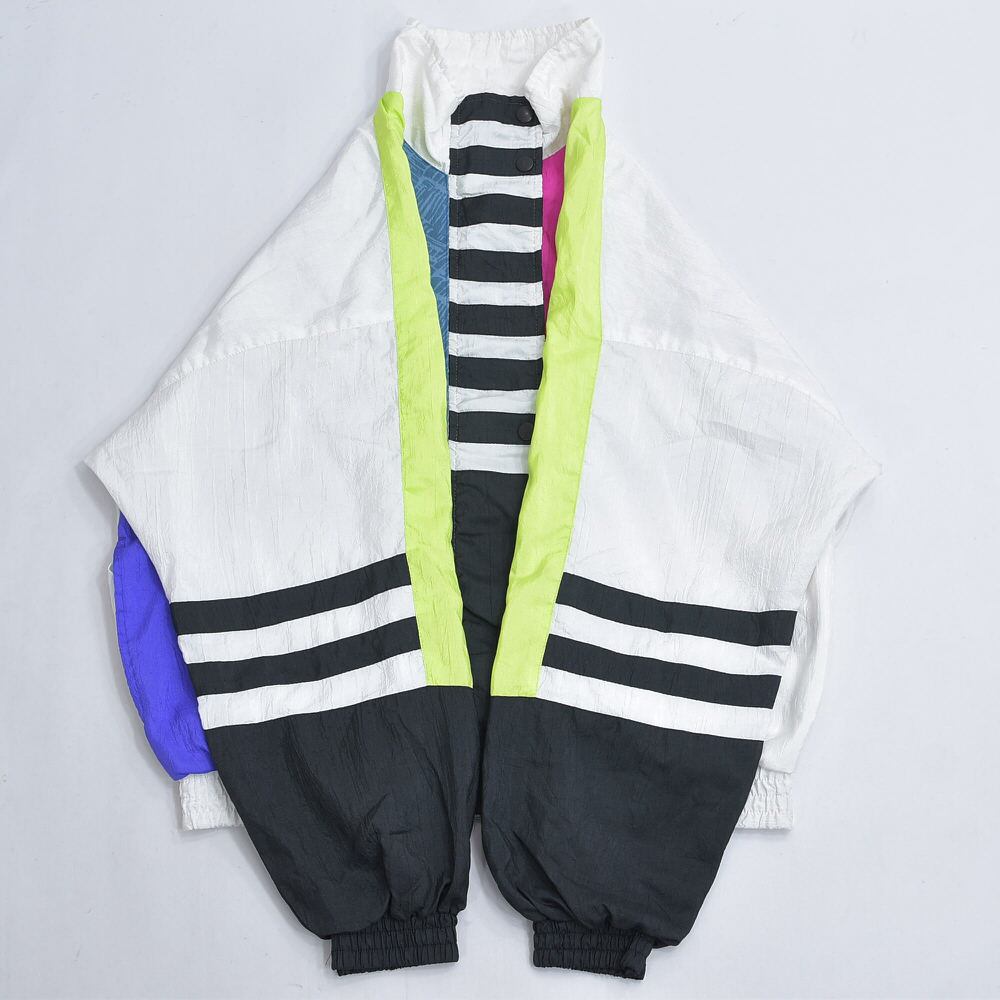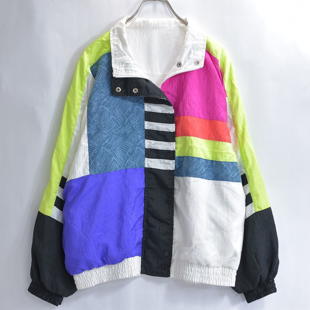 Vintage クレイジーパターン マルチカラー スタンドネック ジャケット アウター ヴィンテージ ウォームアップジャケット ブルゾン ナイロン ホワイト ビンテージ 古着 レディース XLサイズ相当
