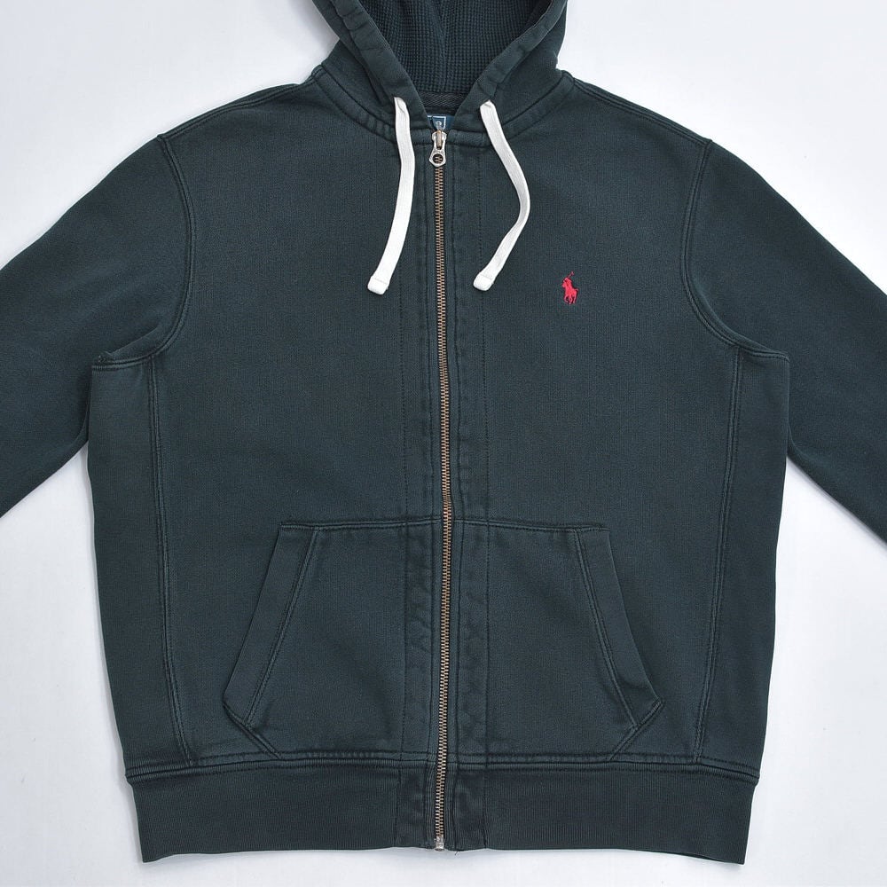 90s Polo by Ralph Lauren ラルフローレン フルジップ スウェットパーカー ヴィンテージ ブラック フェード ビンテージ USA アメリカ古着 メンズLサイズ
