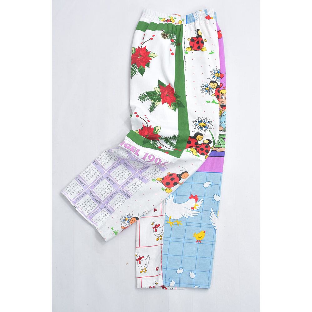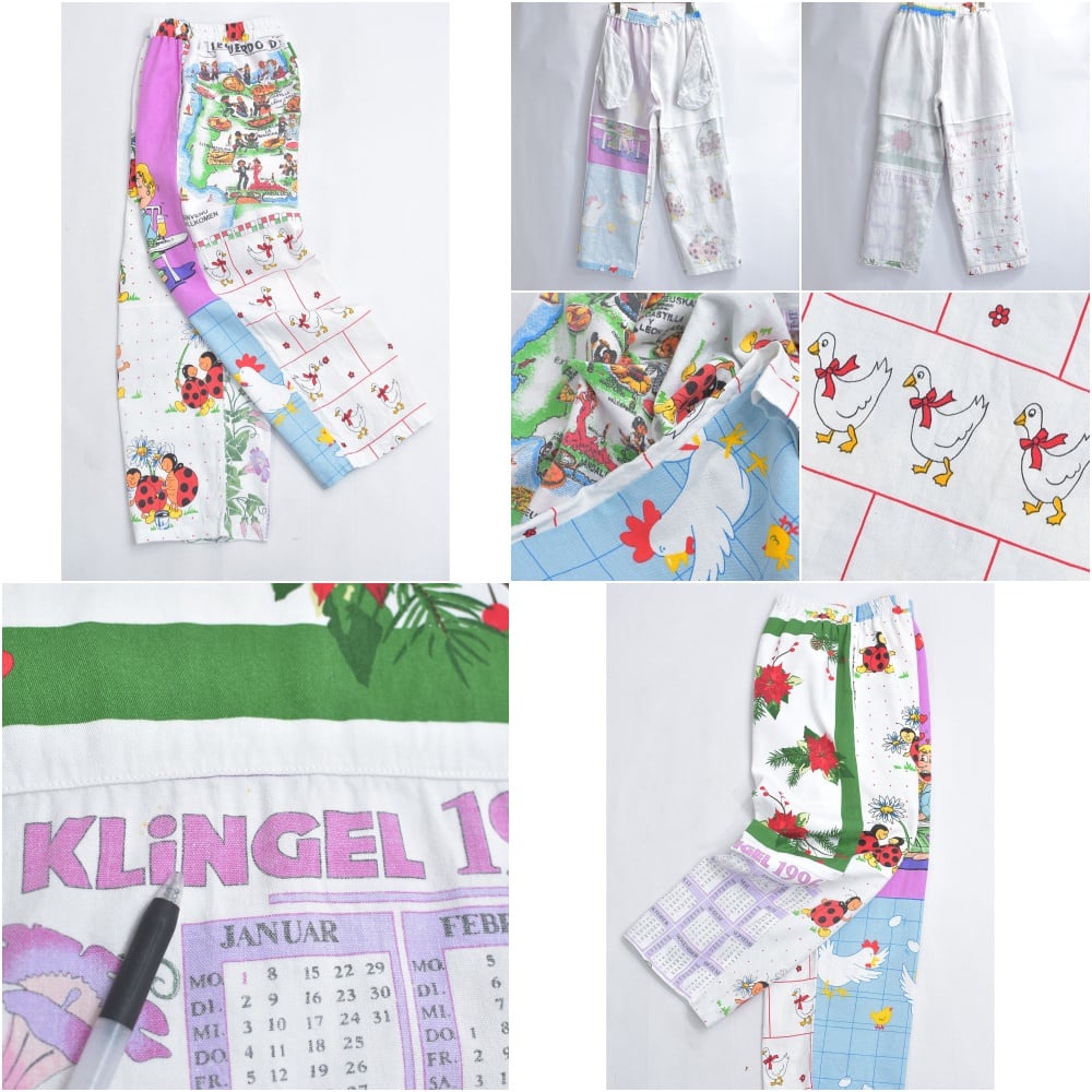 ヴィンテージなどの色んな生地を丁寧に繋ぎ合わせて一本のパンツに仕上げたリメイクパンツ