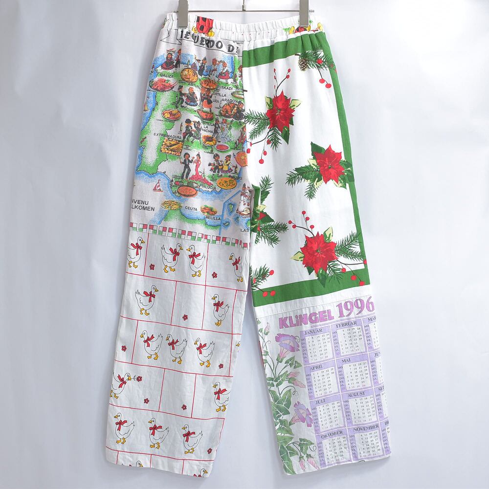 Remakeリメイク ヴィンテージ テキスタイル パッチワーク デザイン 再構築 ルーズシルエット イージーパンツ ツギハギ 古着 裏地付き レディースW69〜95cm