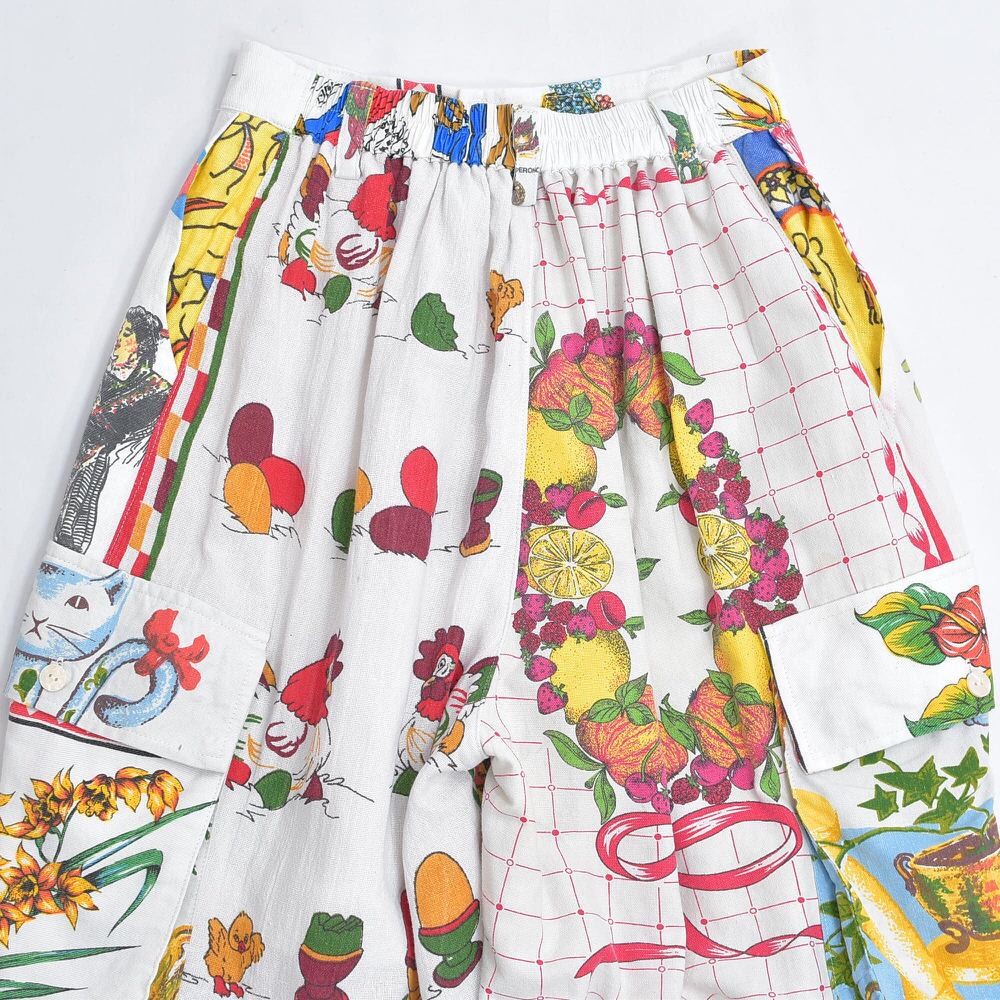 Remakeリメイク ヴィンテージ テキスタイル パッチワーク デザイン 再構築 ワイド ルーズシルエット カーゴパンツ ツギハギ 古着 裏地付き レディースW65~80cm