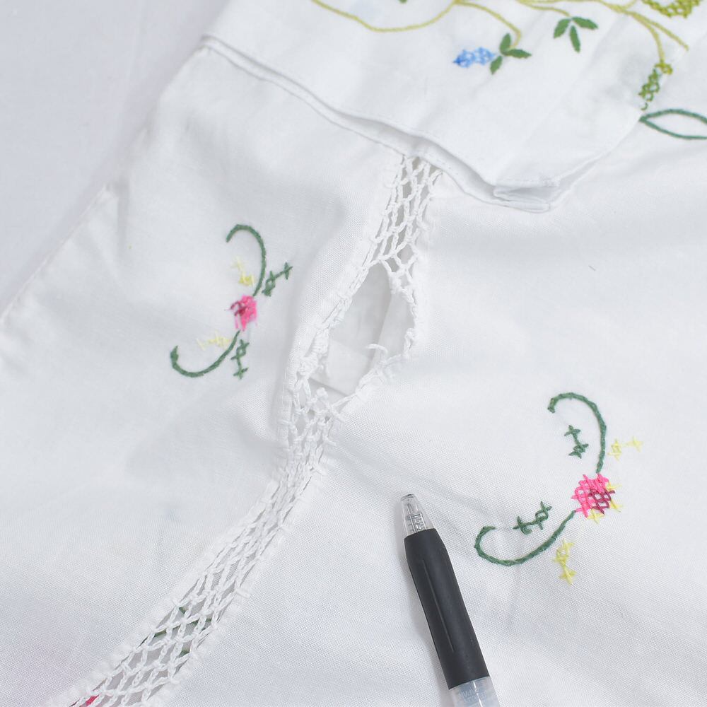 爽やかな風合いを感じる薄手のコットン素材を使った生地に、ほっこりと優しい気持ちになれるお花のデザインやはじごレースの素敵な雰囲気