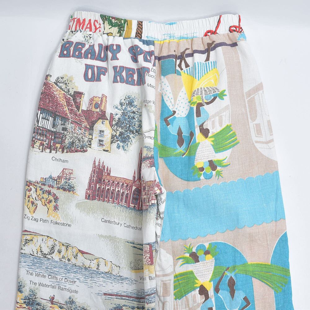 Remakeリメイク ヴィンテージ テキスタイル パッチワーク デザイン 再構築 ルーズシルエット イージーパンツ ツギハギ 古着 裏地付き レディースW70~88cm
