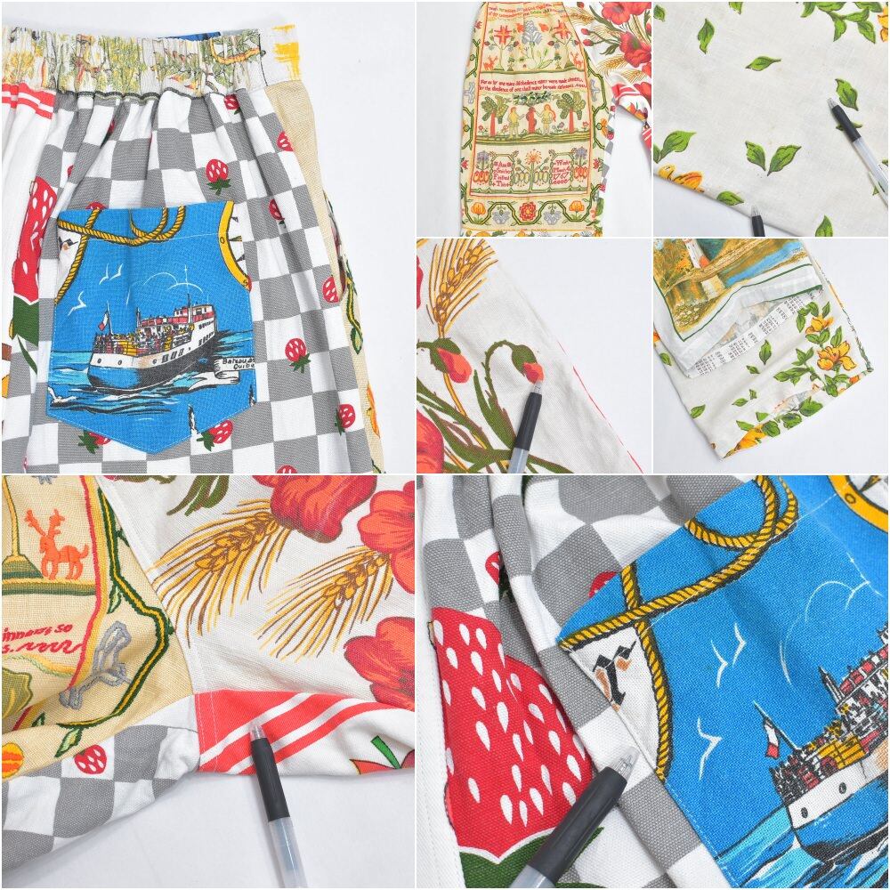 ヴィンテージの色んな生地を丁寧に繋ぎ合わせて一本のパンツに仕上げたリメイクパンツ