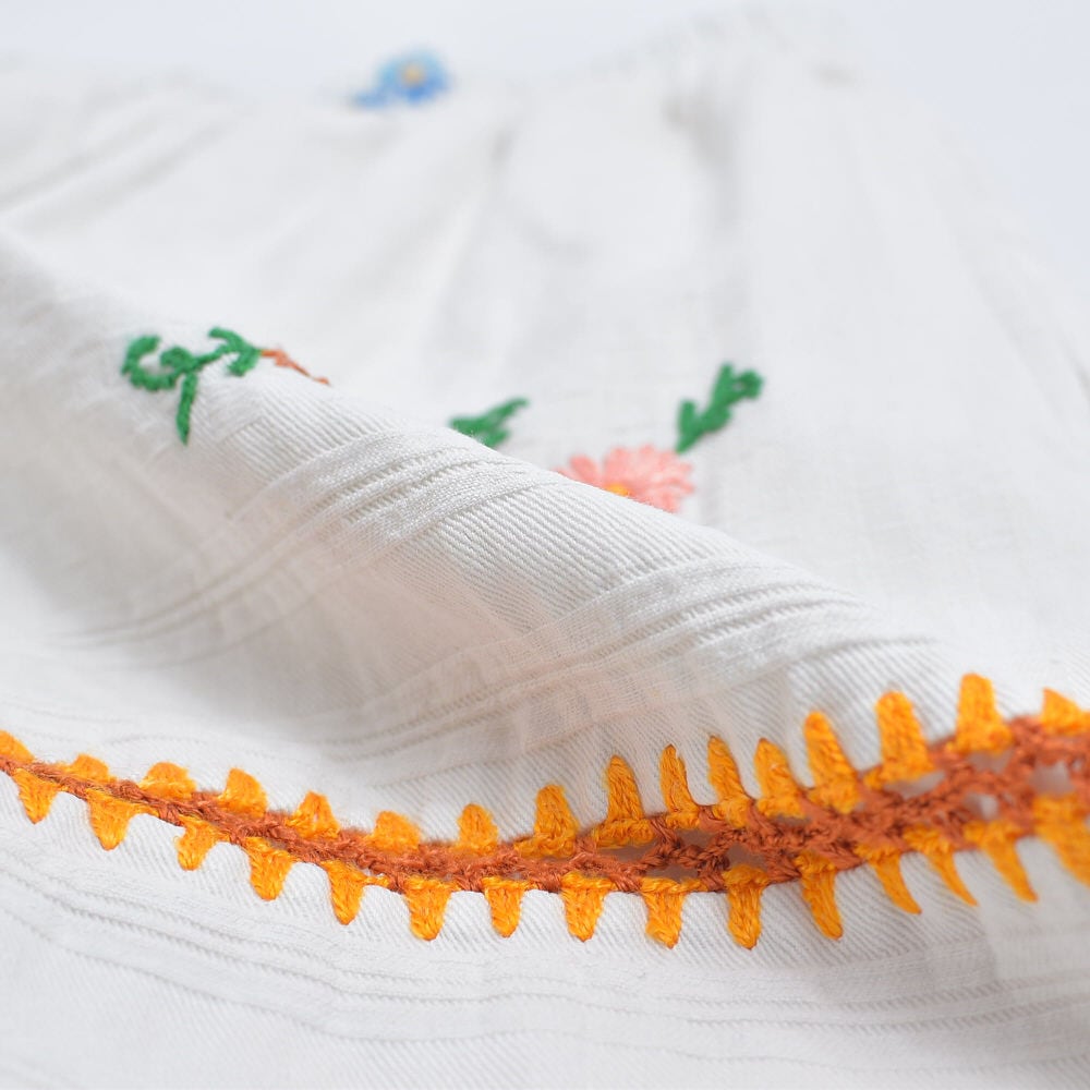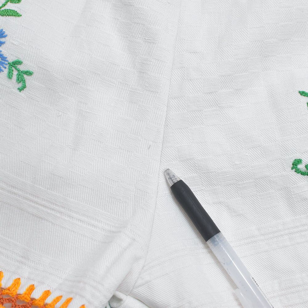 Remakeリメイク 再構築 パッチワーク&フラワー刺繍 デザイン ルーズシルエット コットン リネン イージーパンツ オフホワイト 古着 裏地付き レディースW66~90cm