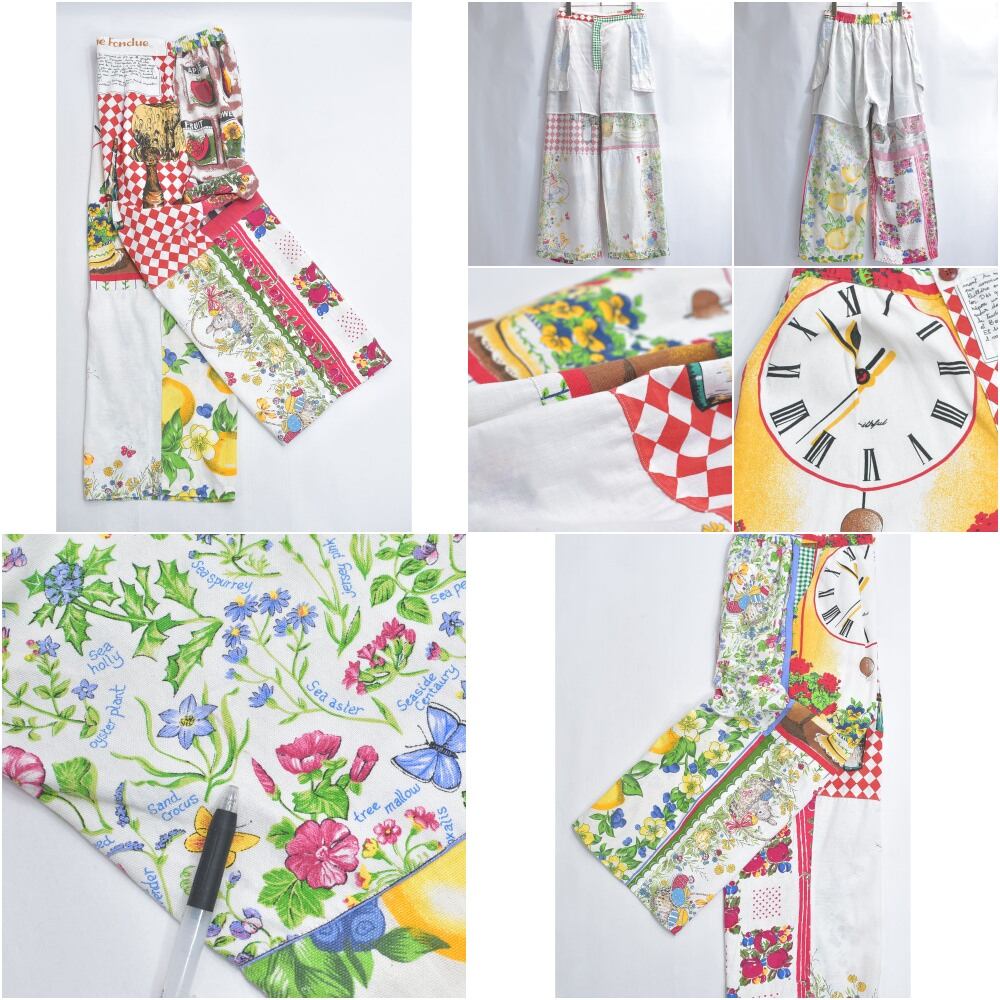 Remakeリメイク ヴィンテージ テキスタイル パッチワーク デザイン 再構築 ワイド ルーズシルエット バギーパンツ ツギハギ 古着 裏地付き レディースW70〜90cm