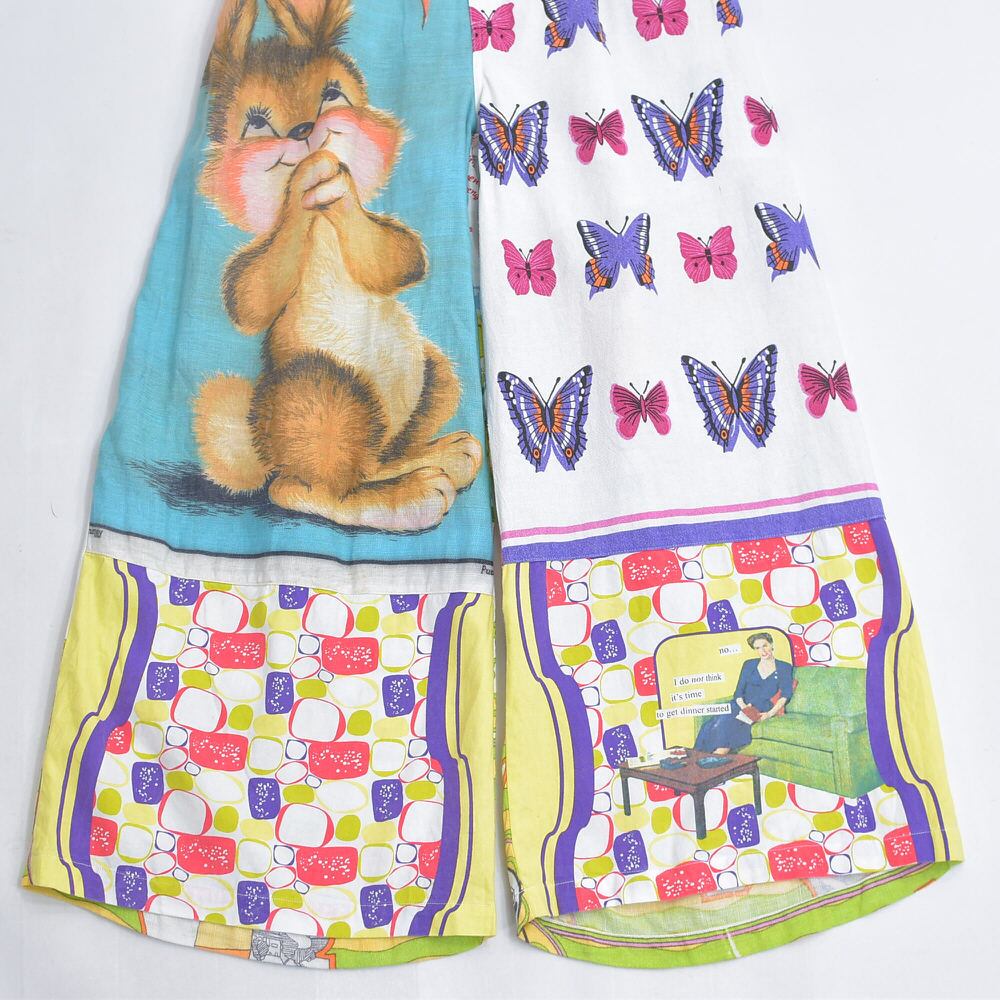 Remakeリメイク ヴィンテージ テキスタイル パッチワーク デザイン 再構築 ワイド ルーズシルエット バギーパンツ ツギハギ 古着 裏地付き レディースW68〜90cm