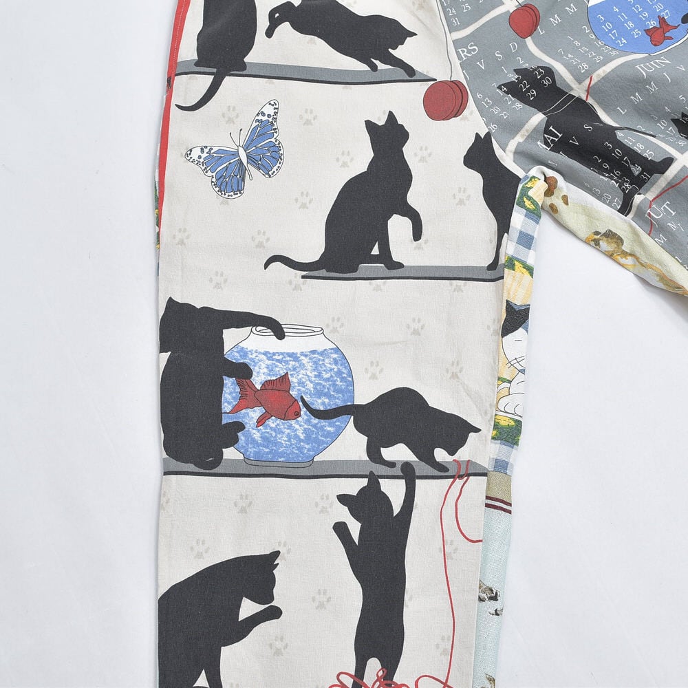 Remakeリメイク ヴィンテージ テキスタイル パッチワーク デザイン 再構築 ルーズシルエット イージーパンツ ツギハギ 古着 裏地付き レディースW68~96cm
