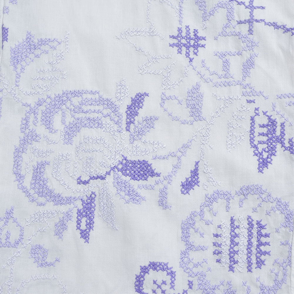 前後で違う刺繍クロスを繋ぎ合わせ、前から見ても、後ろから見てもそれぞれ違う印象を楽しめる佇まいに惚れ惚れしますね