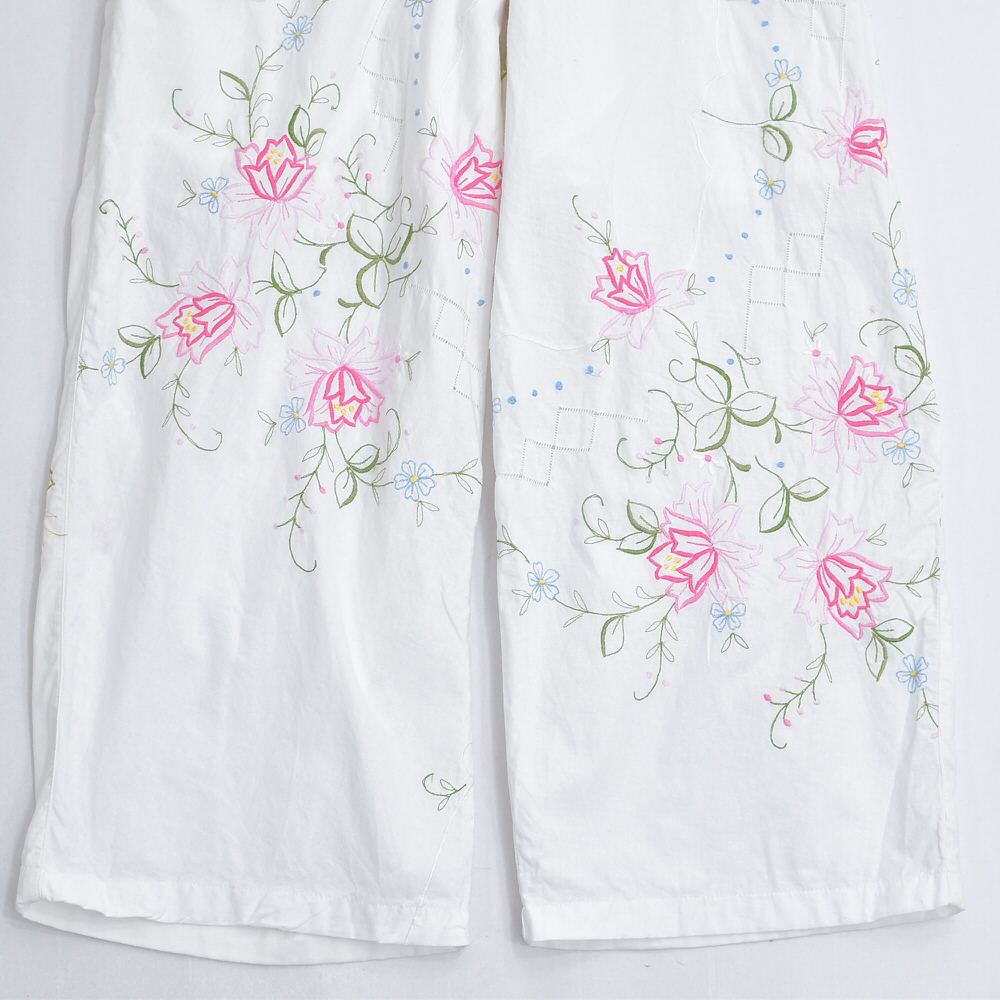 Remakeリメイク 再構築 パッチワーク&フラワー刺繍 デザイン ワイドシルエット コットン カーゴパンツ バギー ホワイト 古着 裏地付き レディースW70〜92cm