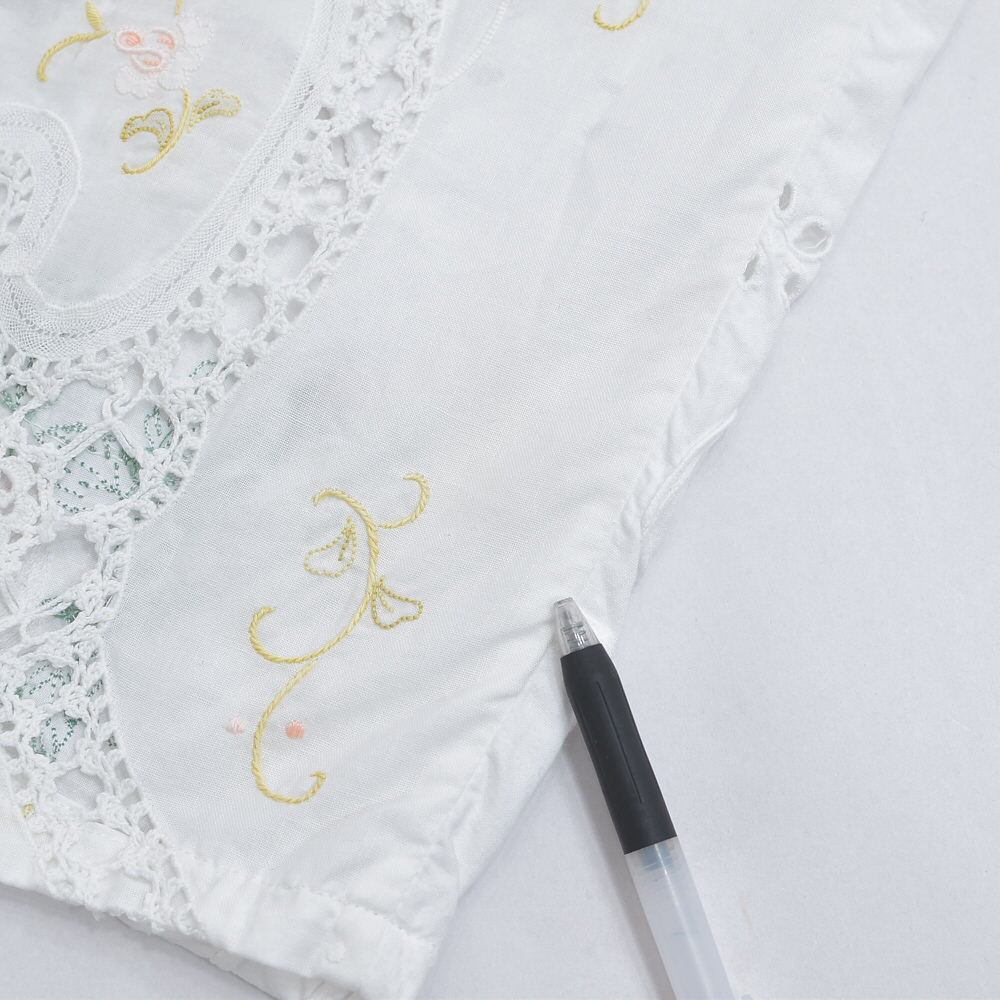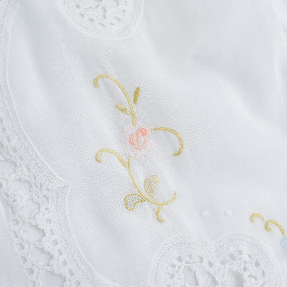 柔らかな風合いを感じるのコットン生地に、ホッと優しい気持ちになれる可憐で上品なお花の刺繍やハシゴレースの素敵なデザイン