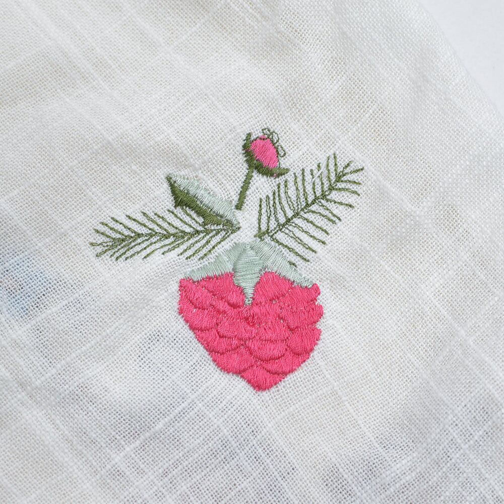 柔らかな風合いを感じるリネンの生地に、ほっこりと優しい気持ちになれるお花のデザインの素敵な佇まい