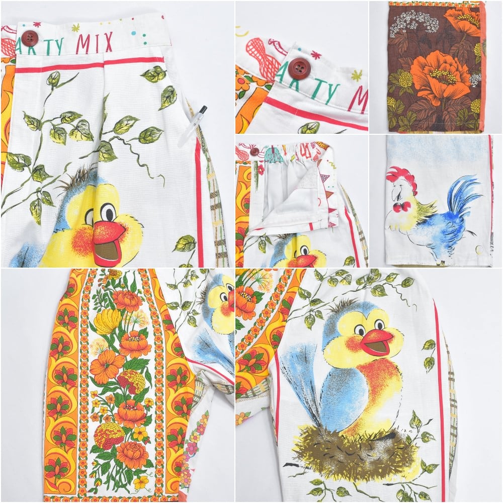 Remakeリメイク ヴィンテージ テキスタイル パッチワーク デザイン 再構築 ルーズシルエット ワイドパンツ ツギハギ 古着 裏地付き レディースW70〜90cm