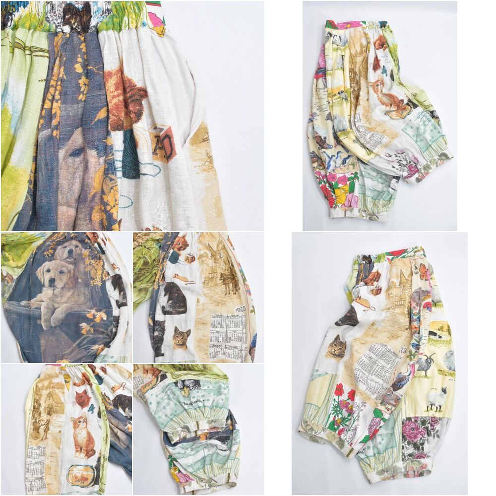 Remake リメイク ヴィンテージ テキスタイル パッチワーク デザイン バルーンシルエット イージーパンツ 再構築 ツギハギ コットン レディースW68~90cm