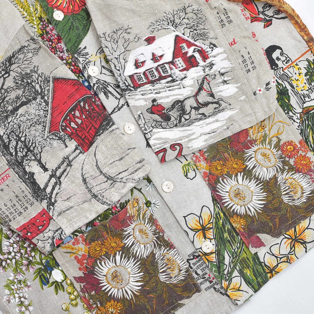 そんなコットンやリネンを使ったティータオルやカレンダーの生地を、丁寧に繋ぎ合わせて一枚のシャツに仕立てたリメイクシャツ