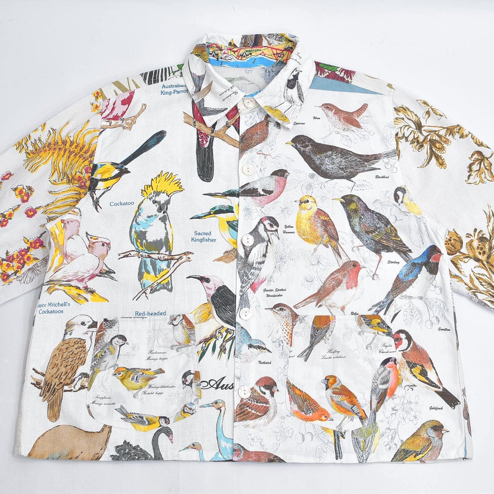 そんなコットンやリネンを使ったティータオルやカレンダーの生地を、丁寧に繋ぎ合わせて一枚のシャツに仕立てたリメイクシャツ