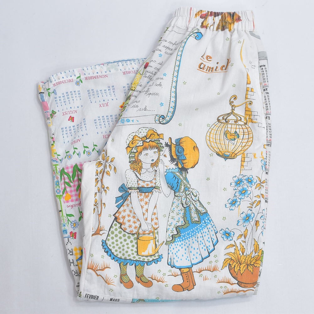 Remakeリメイク ヴィンテージ テキスタイル パッチワーク デザイン 再構築 ルーズシルエット イージーパンツ ツギハギ 古着 裏地付き レディースW63~96cm