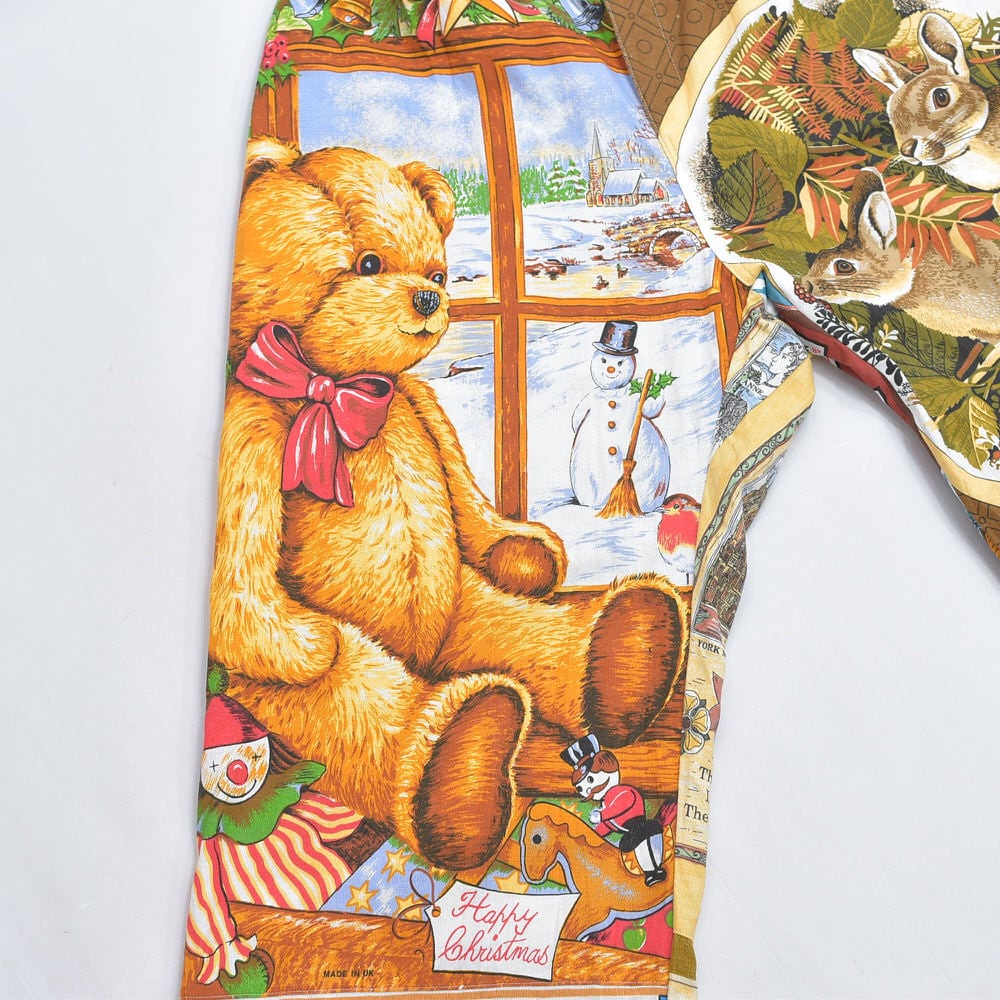 Remakeリメイク ヴィンテージ テキスタイル パッチワーク デザイン 再構築 ワイド ルーズシルエット バギーパンツ ツギハギ 古着 裏地付き レディースW66~88cm