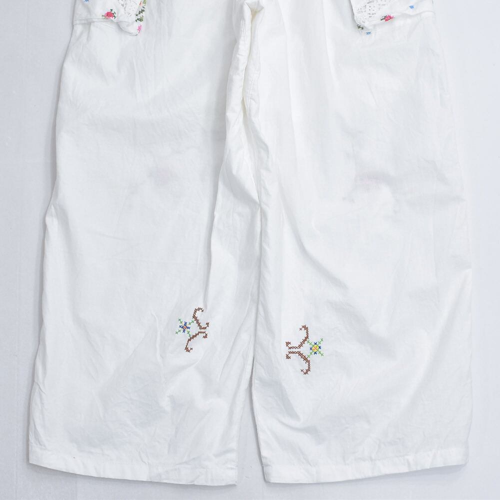 Remakeリメイク 再構築 パッチワーク&フラワー刺繍 デザイン ワイドシルエット コットン カーゴパンツ バギー ホワイト 古着 裏地付き レディースW70~98cm