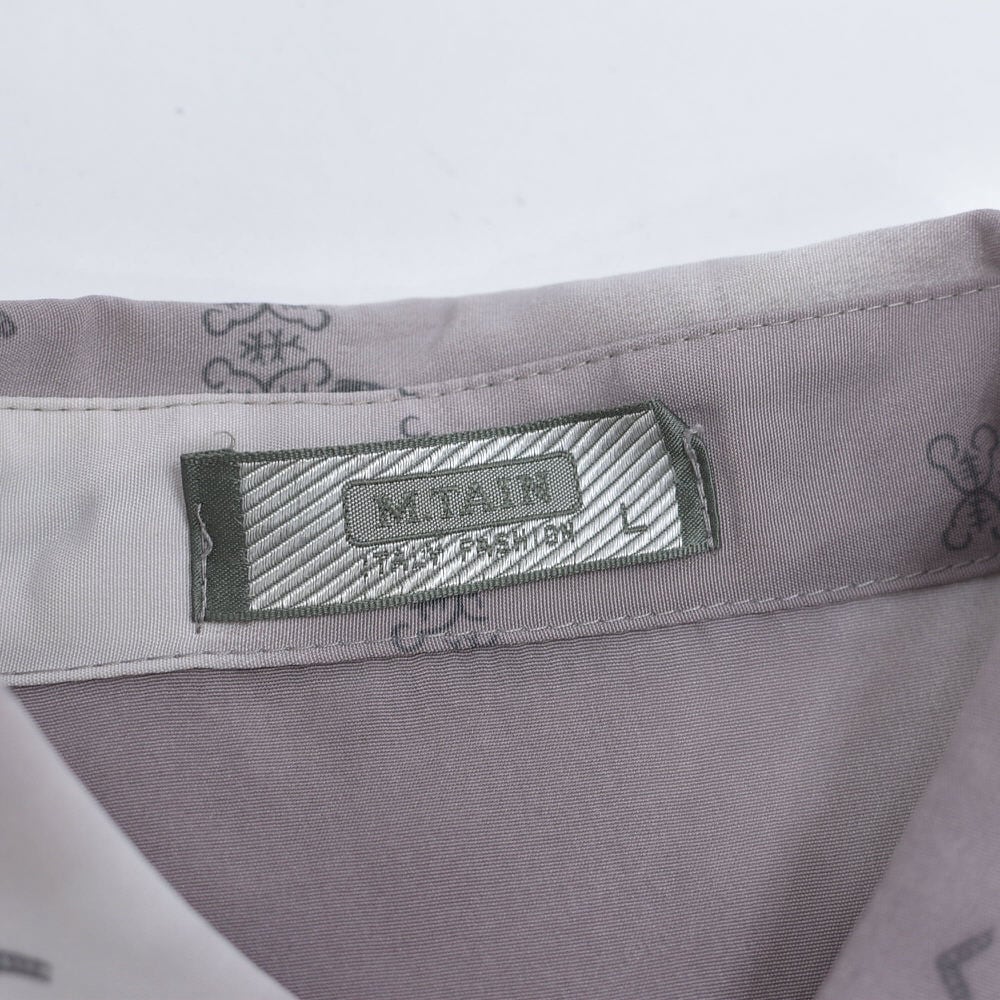 90s〜 M.TAIN モダン ヨーロピアンパターン 総柄 ポリエステルシャツ 半袖 タイダイ柄 ヴィンテージ ラベンダーグレー ビンテージ 古着 メンズ Lサイズ