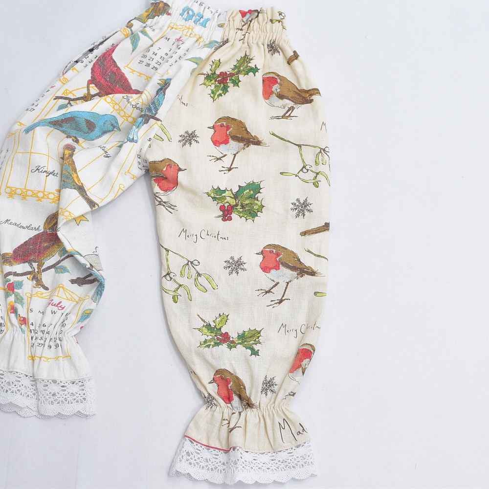 Kid's キッズ Remakeリメイク テキスタイル パッチワーク デザイン ドロワーズ風パンツ コットン リネン イージーパンツ ツギハギ 古着 子供服 裏地付き W40〜72cm