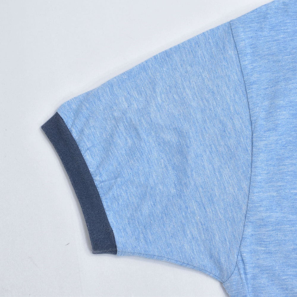 そんな時代の熱気を 爽やかなヘザーブルーのリンガーTシャツに閉じ込めた一枚