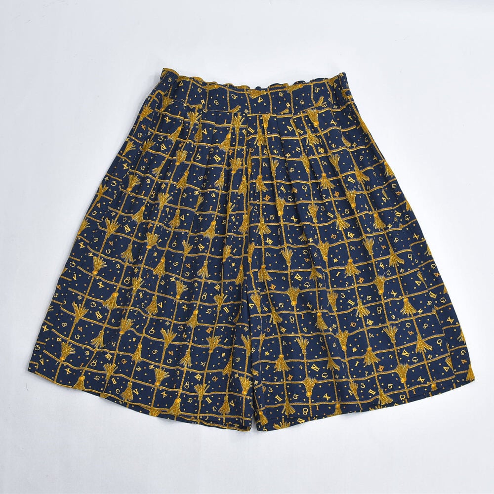 90s USA製 Craig Clothing Co. キュロットパンツ 総柄 スカーフ柄プリント イージーパンツ ヴィンテージ ネイビー ビンテージ アメリカ古着 レディースL~XL相当