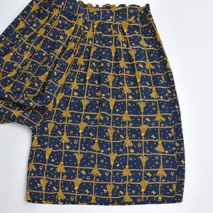 シンプルなノースリーブの黒トップスをタックインしてこの優雅な柄を主役に
