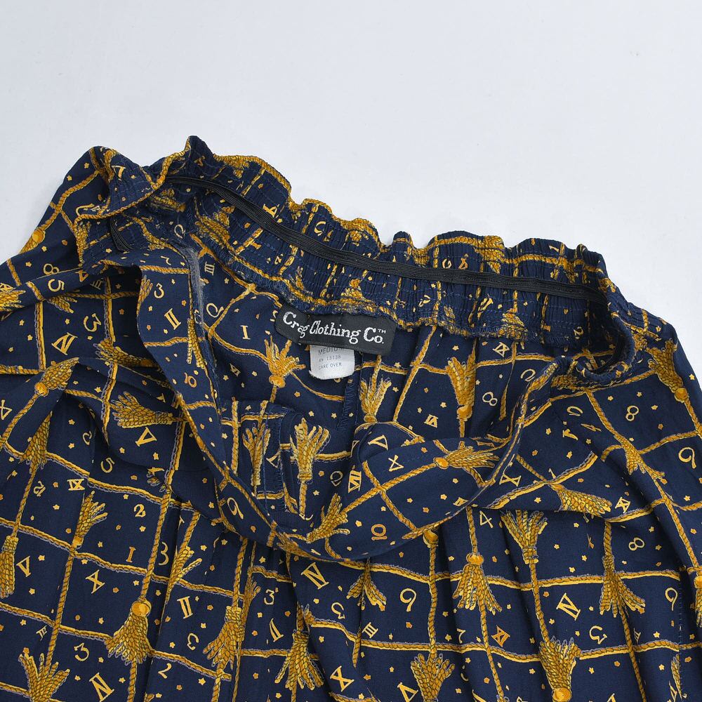 90s USA製 Craig Clothing Co. キュロットパンツ 総柄 スカーフ柄プリント イージーパンツ ヴィンテージ ネイビー ビンテージ アメリカ古着 レディースL〜XL相当