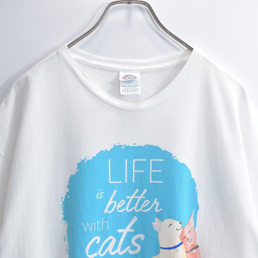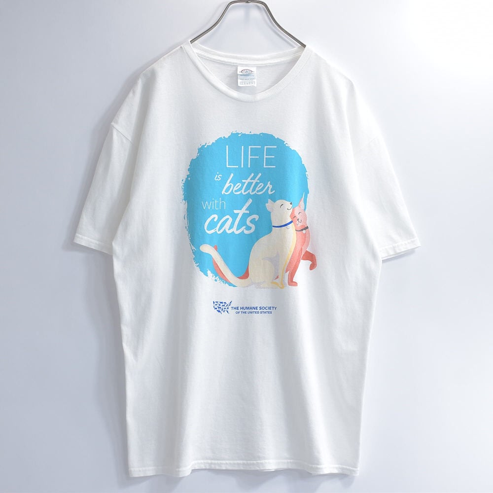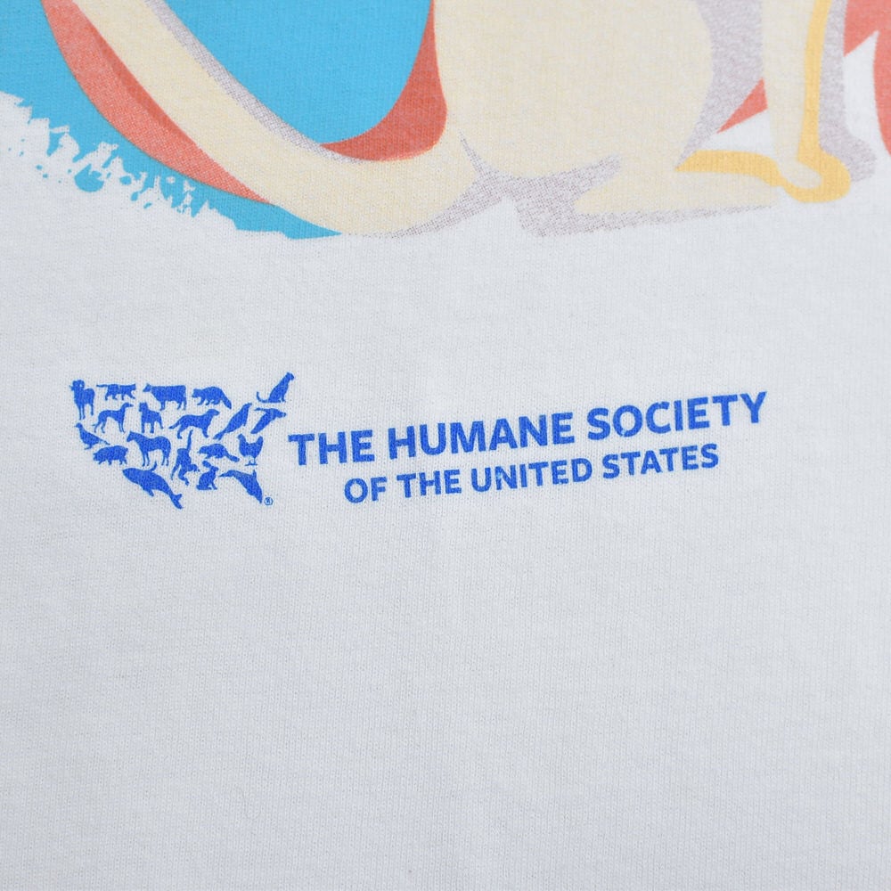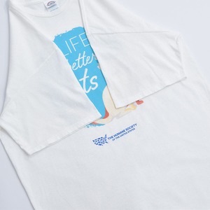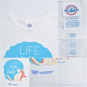 00s DELTA PRO WEIGHT デルタ アニマルプリント 猫 メッセージロゴ Tシャツ THE HUMANE SOCIETY 動物愛護 イラスト 白 ヴィンテージ ホワイト ビンテージ USA アメリカ古着 メンズLサイズ