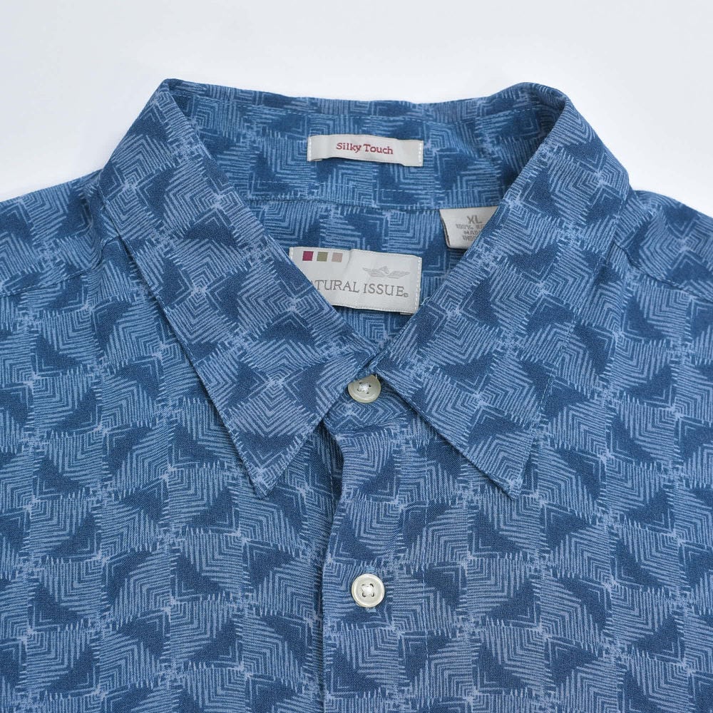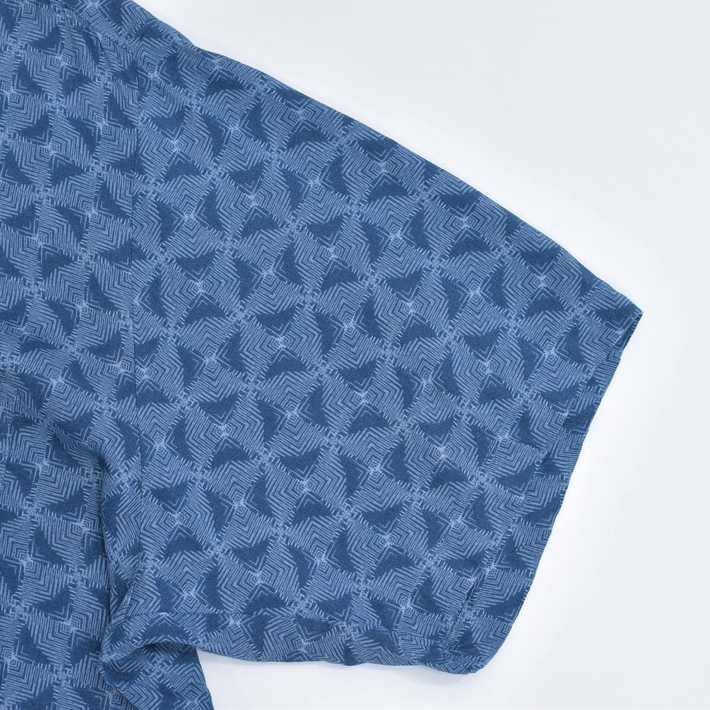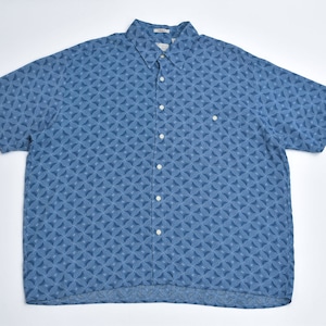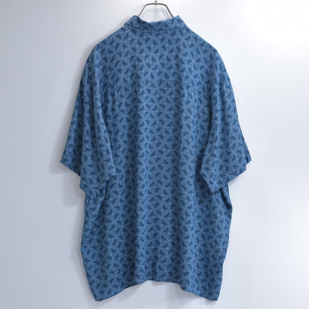 90s〜 NATURAL ISSUE ナチュラルイシュー 幾何学柄 総柄 半袖 レーヨンシャツ ヴィンテージ アート デザイン USA アメリカ古着 アメカジ ブルー メンズXLサイズ
