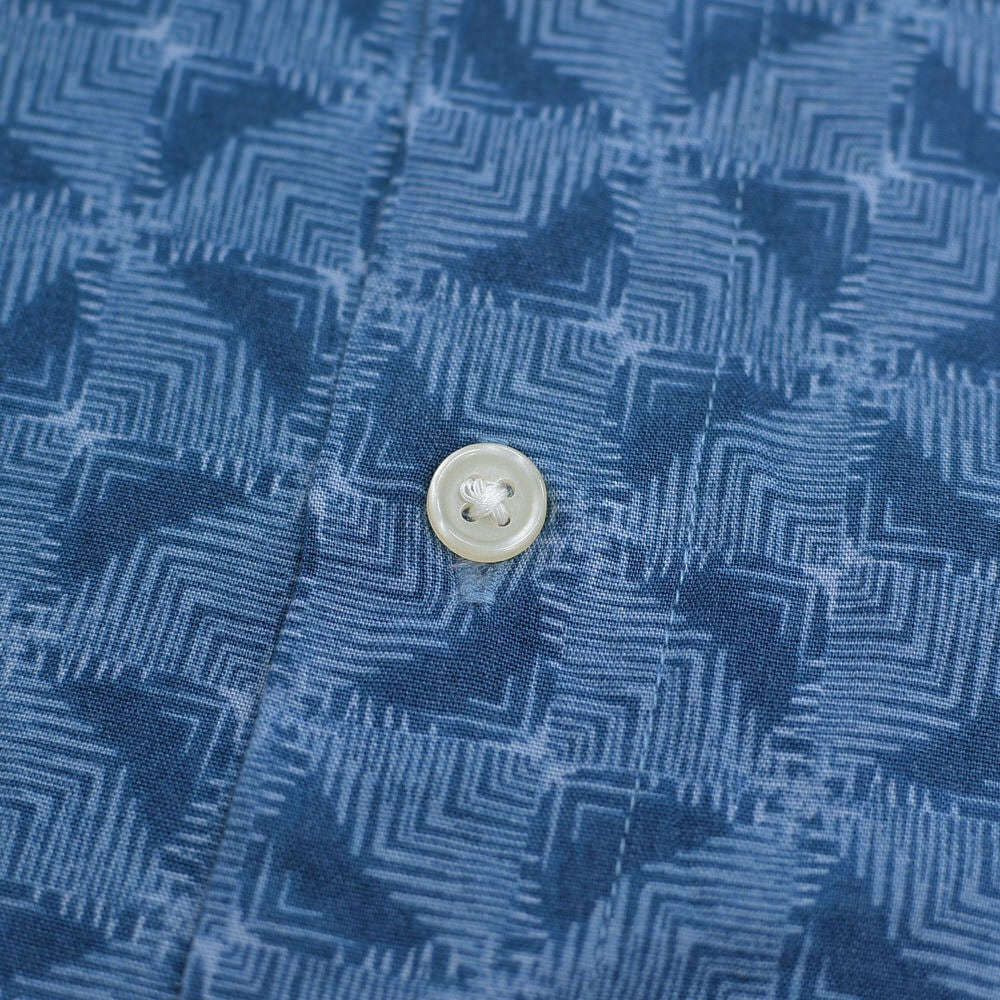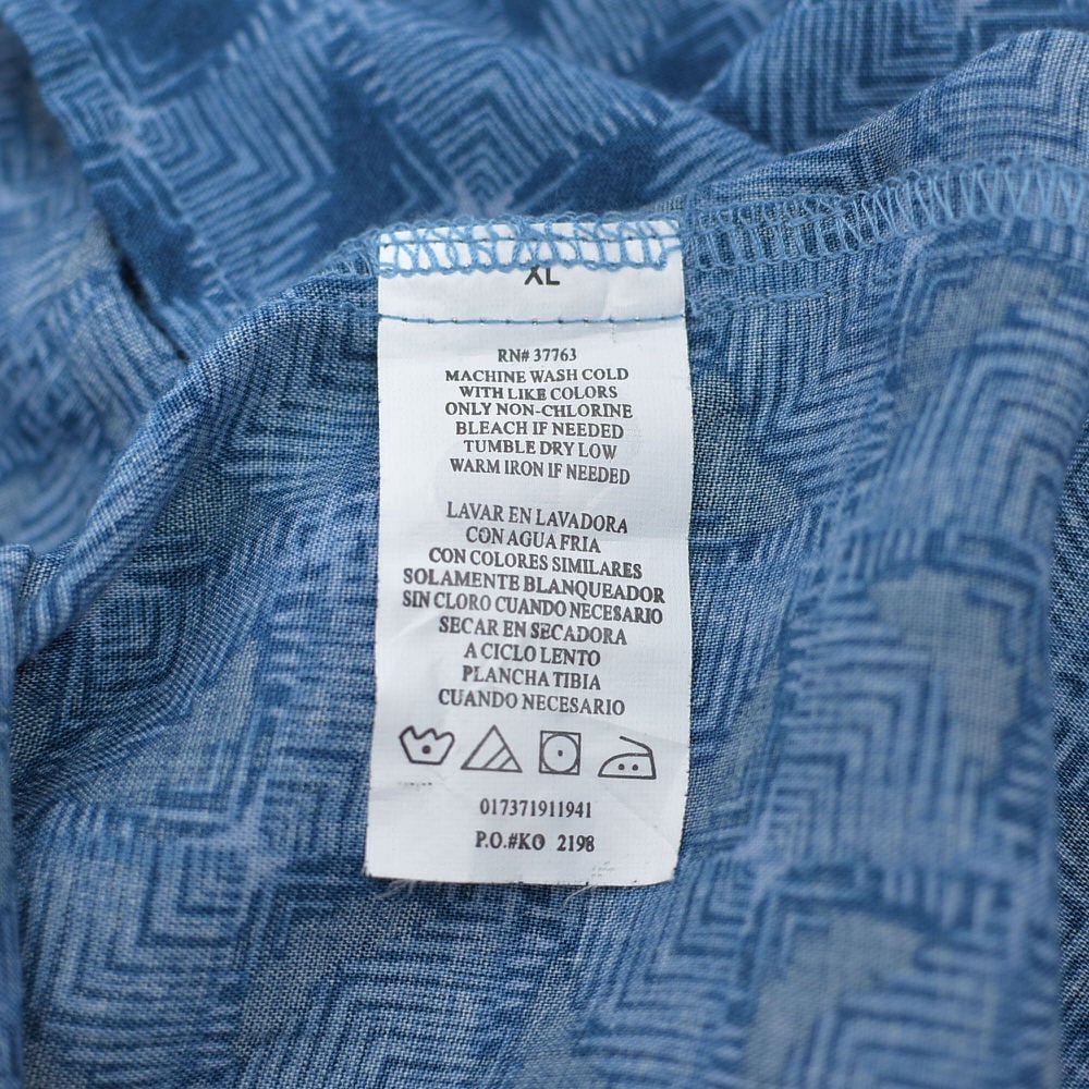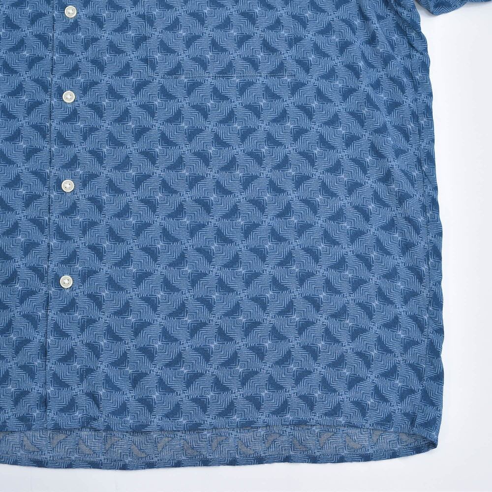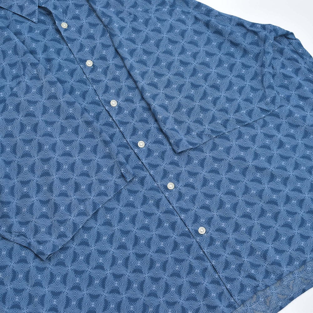 90s〜 NATURAL ISSUE ナチュラルイシュー 幾何学柄 総柄 半袖 レーヨンシャツ ヴィンテージ アート デザイン USA アメリカ古着 アメカジ ブルー メンズXLサイズ