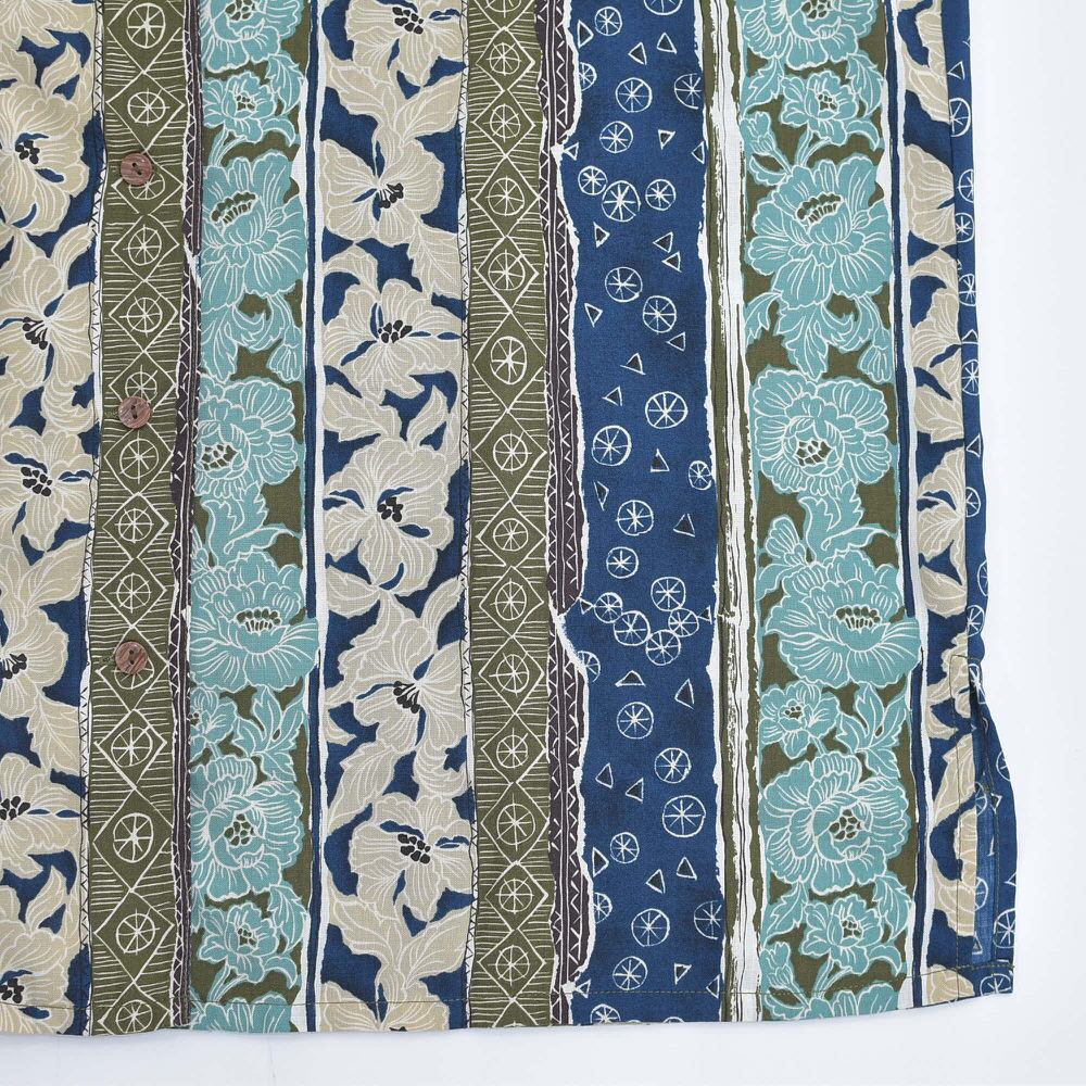 90~00s DESIGN SHIRT デザインシャツ 開襟 花柄 幾何学模様 オープンカラーシャツ ストライプ 半袖 トップス ヴィンテージ ボタニカル レトロ ビンテージ 古着 レディースXL相当