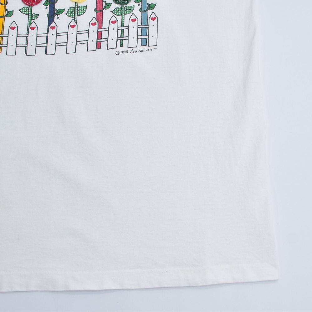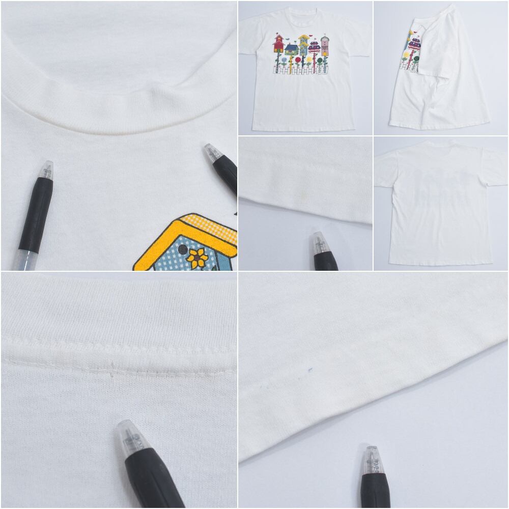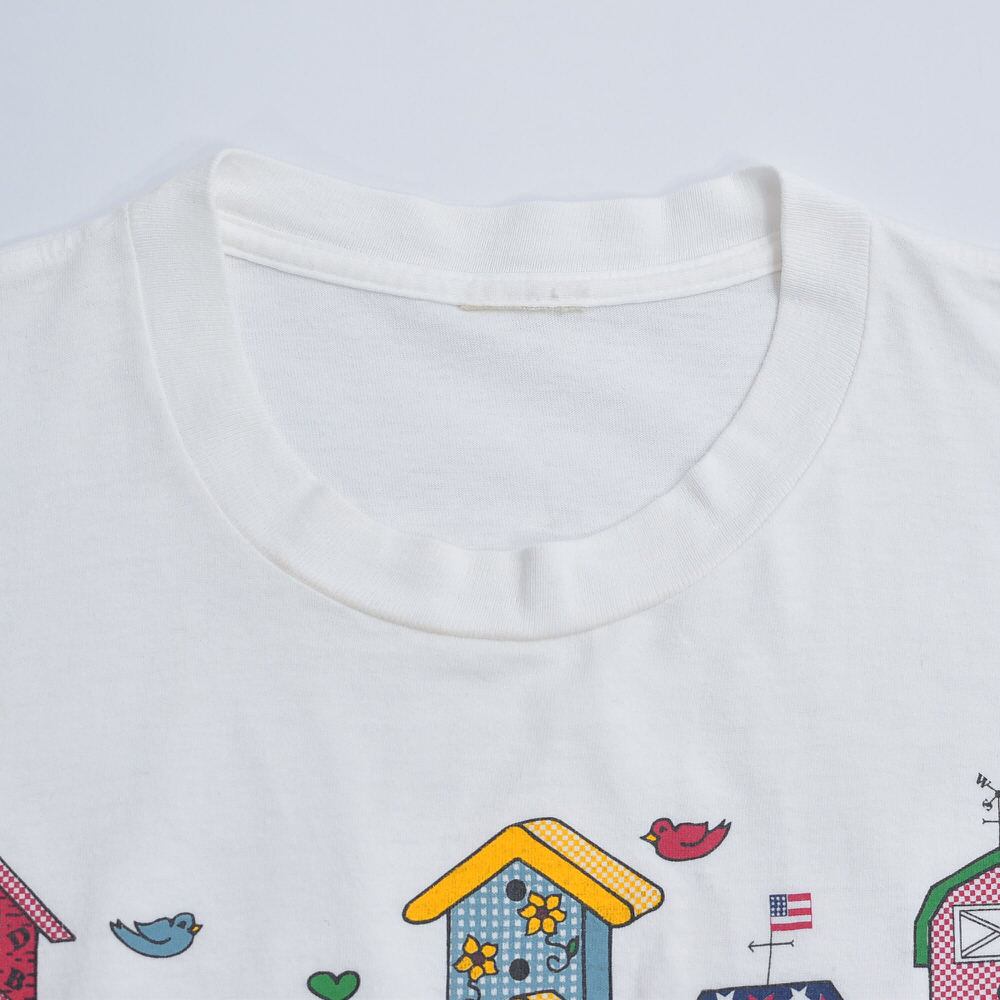 90s Vicki Melhart ヴィッキメルハート ヨーヨーキルト アップリケ デザイン カントリー Tシャツ バードハウス USA アメリカ古着 ヴィンテージ ホワイト ビンテージ メンズL相当