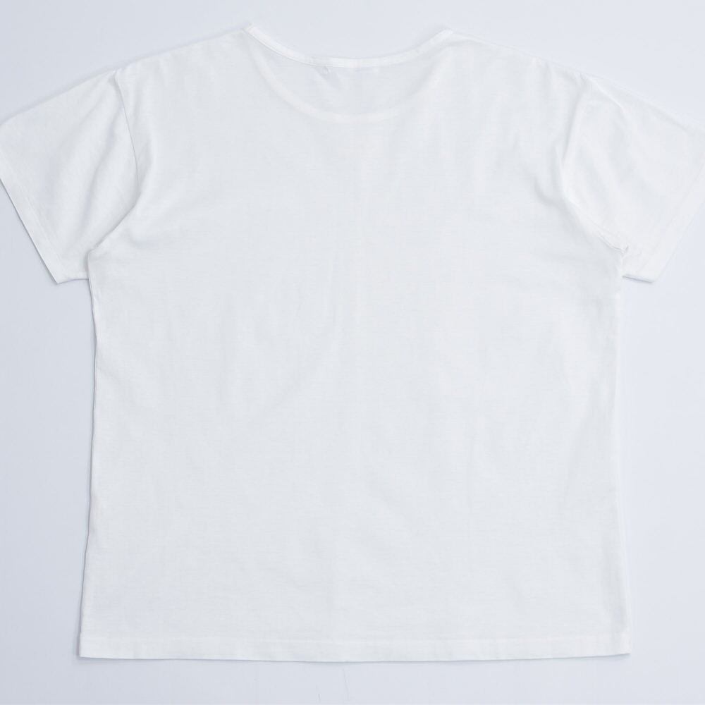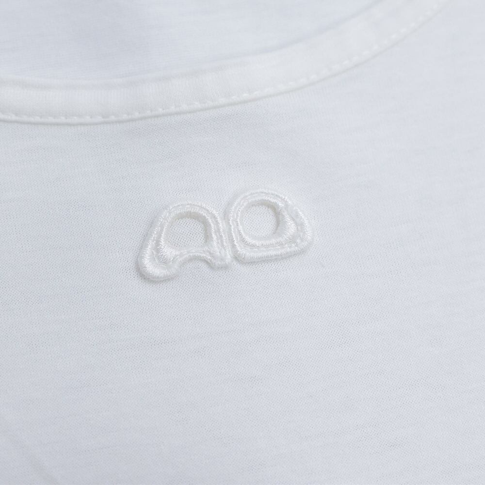 胸元に咲いた、ぷっくり白いお花のようなACロゴ