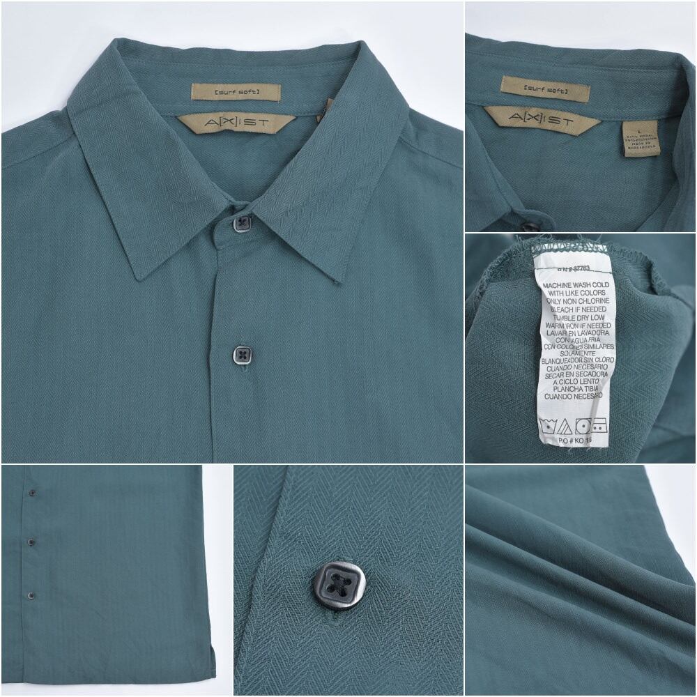 90〜00s AXIST アクシスト ヘリンボーン織 半袖シャツ ルーズシルエット モード デザイン ティールグリーン ヴィンテージ モダール ビンテージ USA アメリカ古着 メンズLサイズ