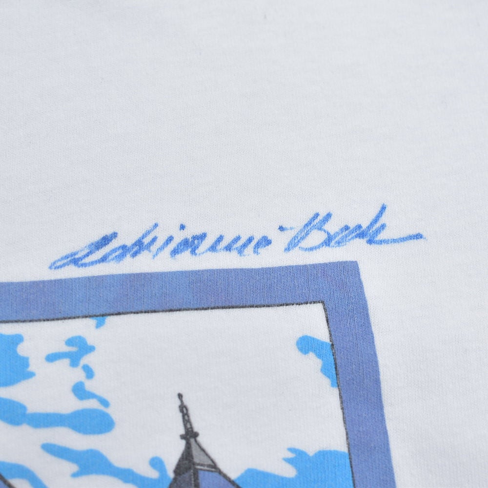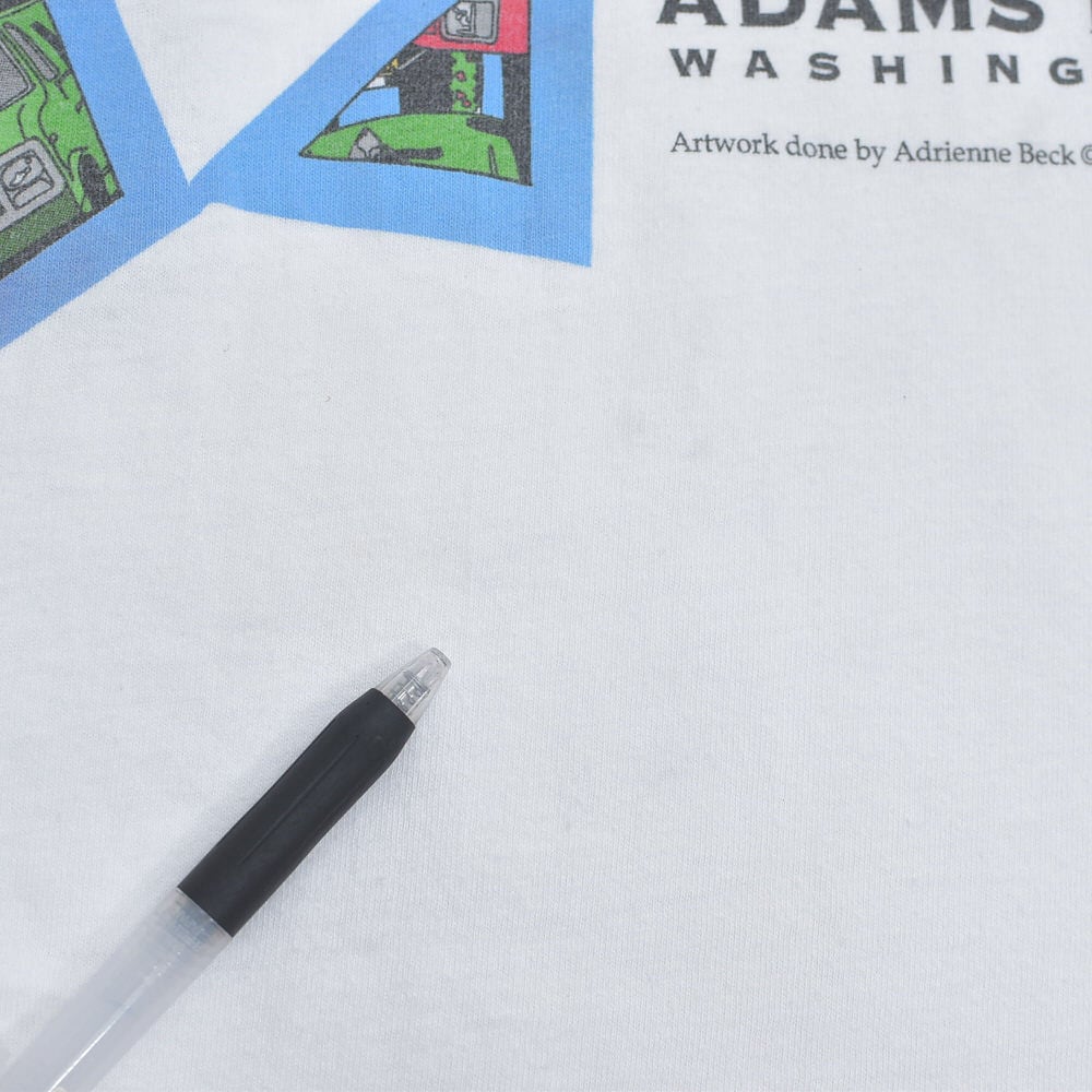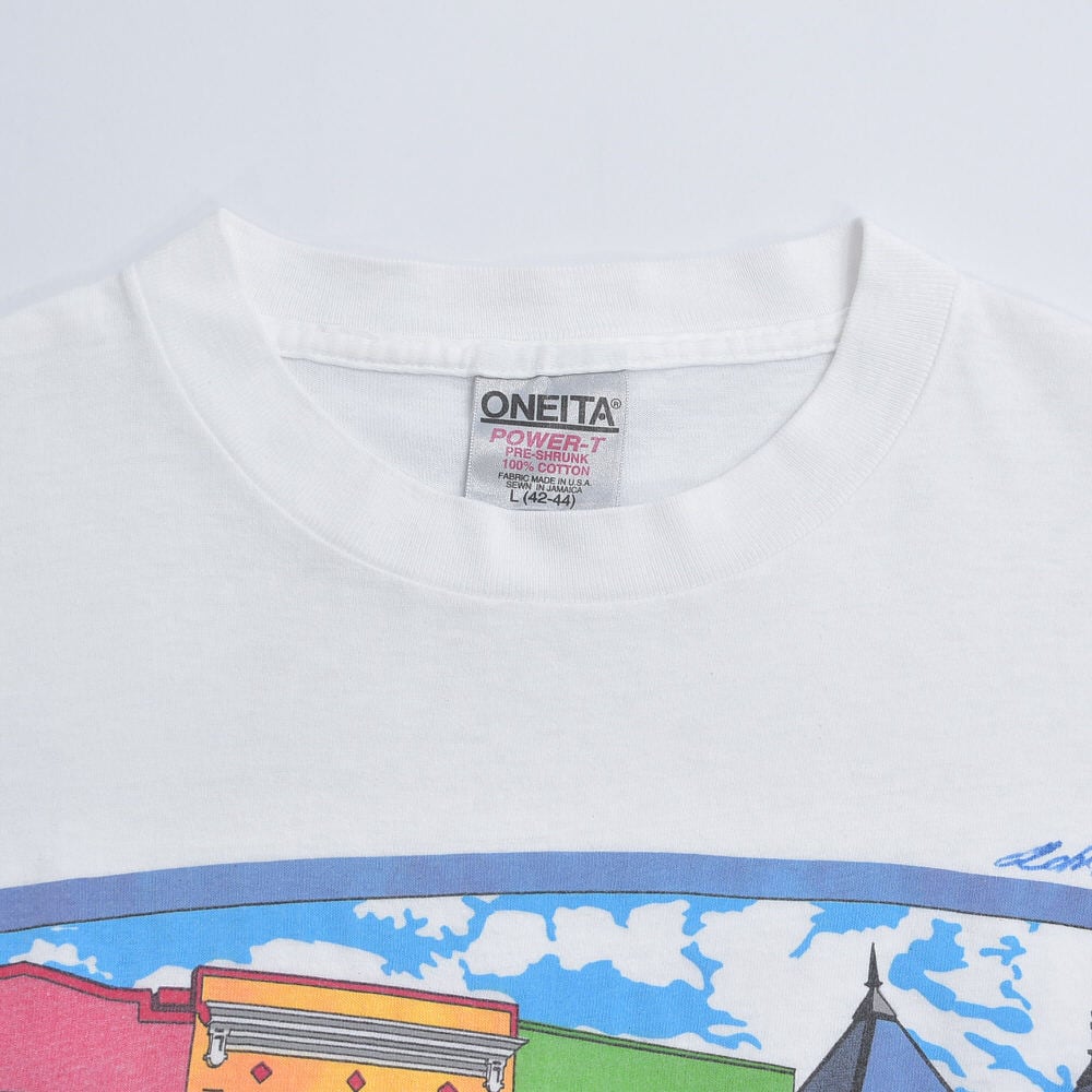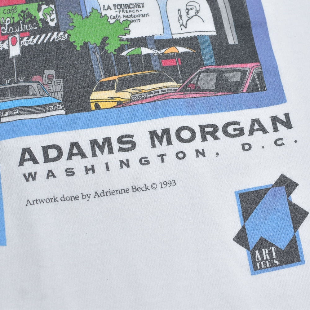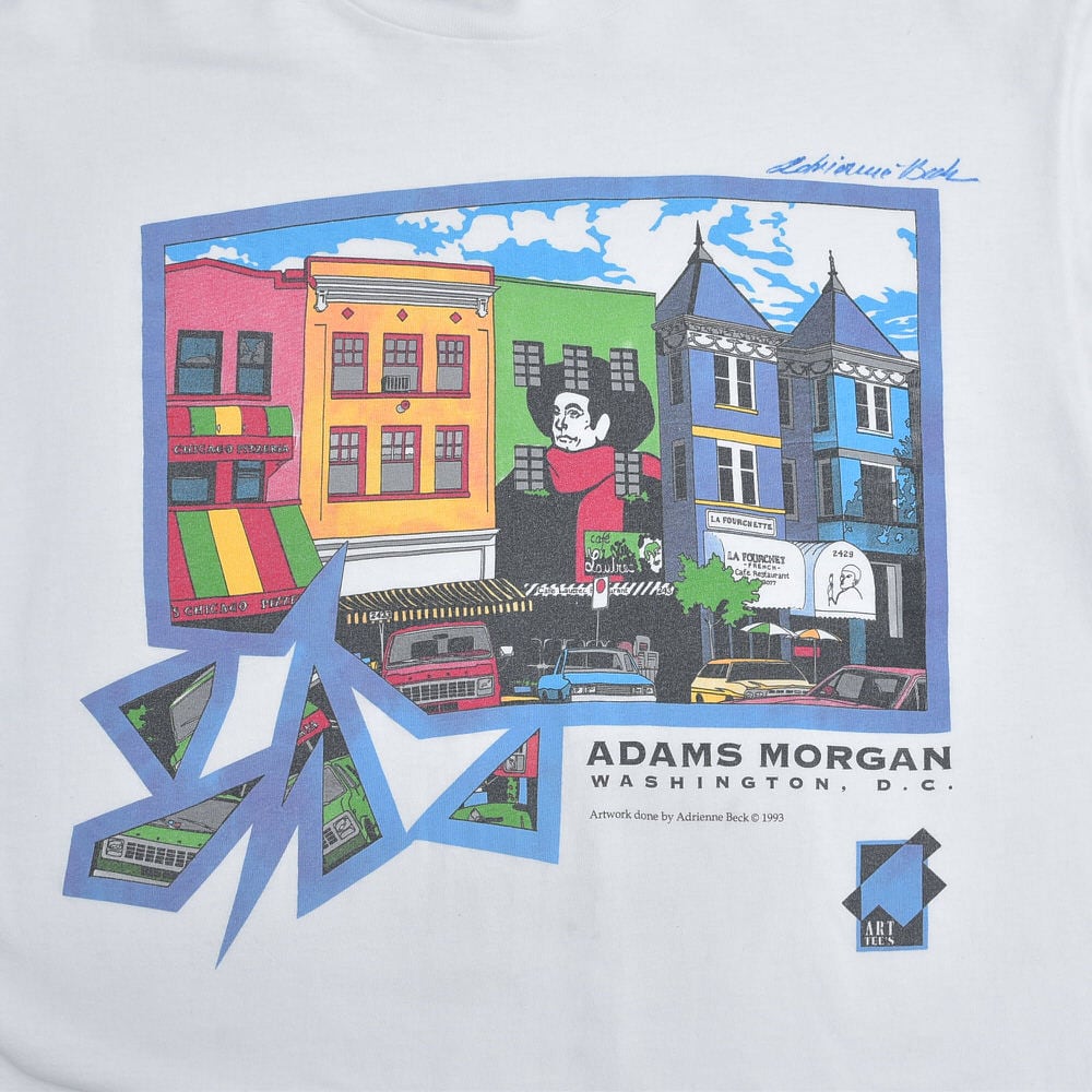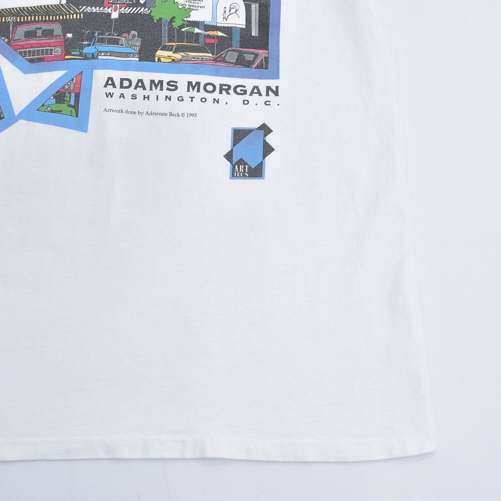 90s USA製生地 ONEITA オニータ Adrienne Beck アート Tシャツ ワシントンDC シングルステッチ POWER-T アダムスモーガン 白 ヴィンテージ ホワイトビンテージ USA アメリカ古着 メンズLサイズ