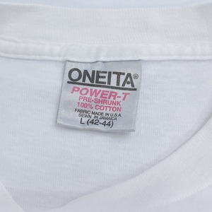 90s USA製 ONEITA オニータ Adrienne Beck アート Tシャツ ワシントンDC シングルステッチ POWER-T アダムスモーガン 白 ヴィンテージ ホワイトビンテージ USA アメリカ古着 メンズLサイズ