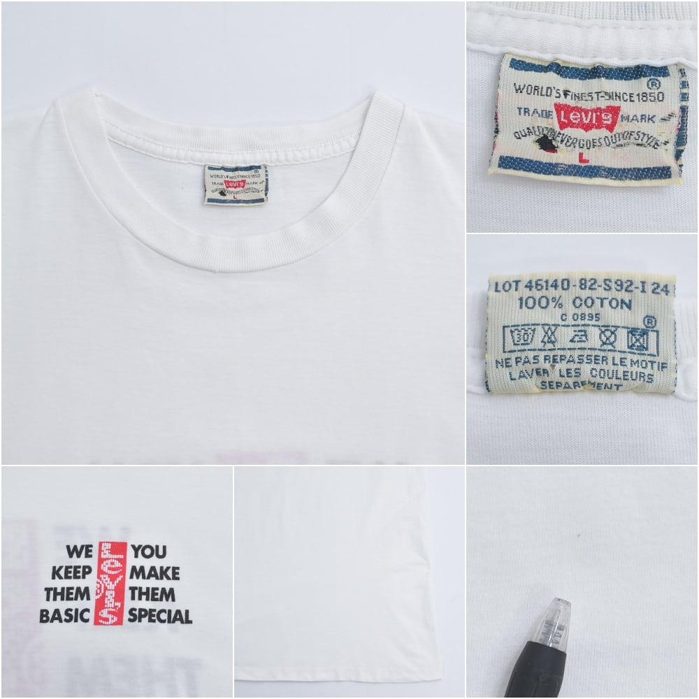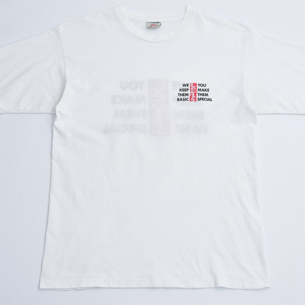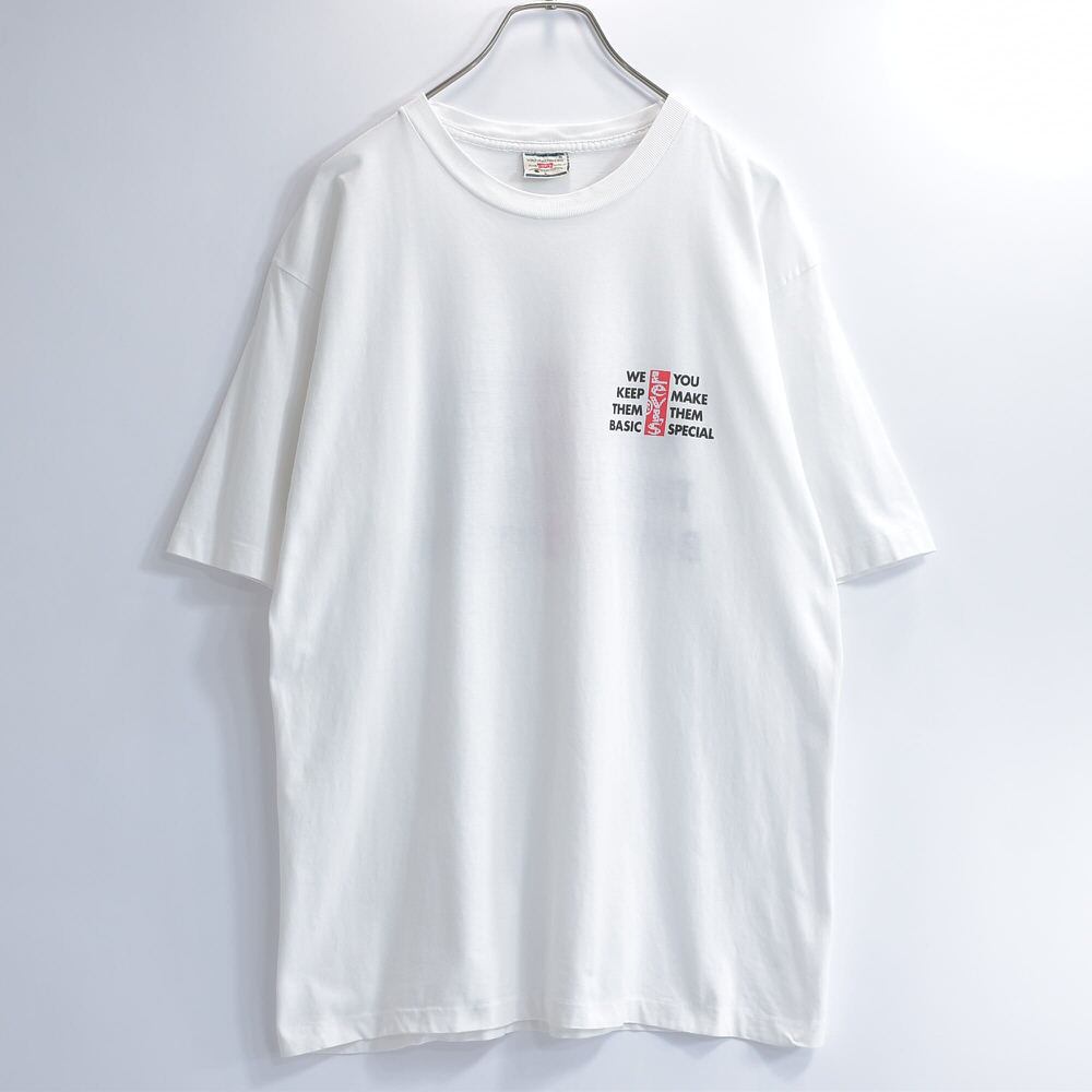 90s Levi's リーバイス アドバタイジング バックプリント 企業ロゴ Tシャツ プロモ キャンペーン ホワイト ヴィンテージ 広告 ビンテージ USA アメリカ古着 メンズLサイズ