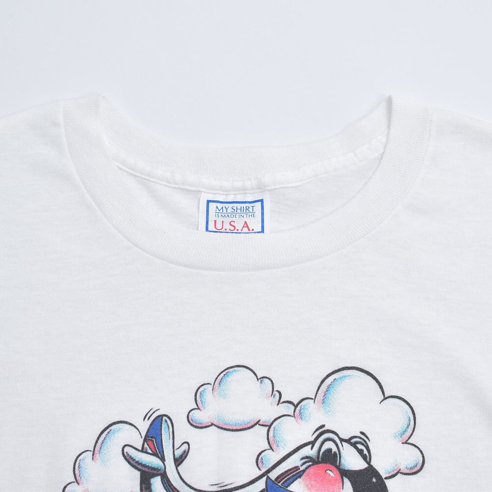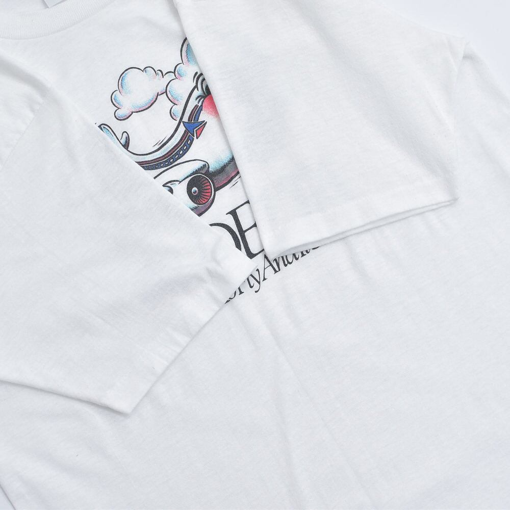 80s USA製 DELTA デルタ航空 企業Tシャツ キャラクター プリント 飛行機 ロゴ 航空会社 アドバタイジング シングルステッチ ホワイト ヴィンテージ 白 ビンテージ アメリカ古着 メンズL相当