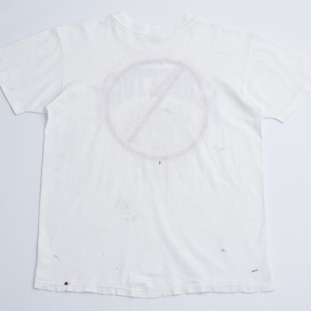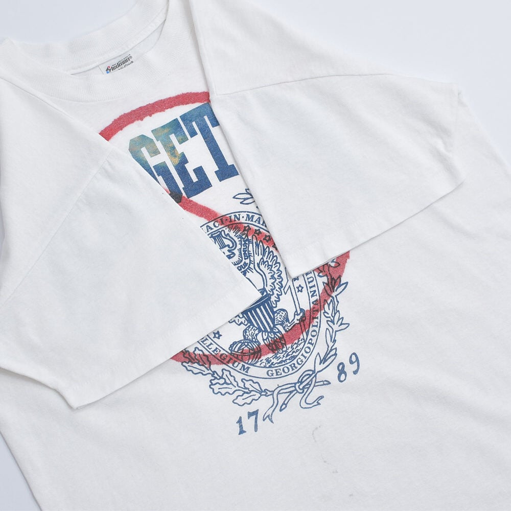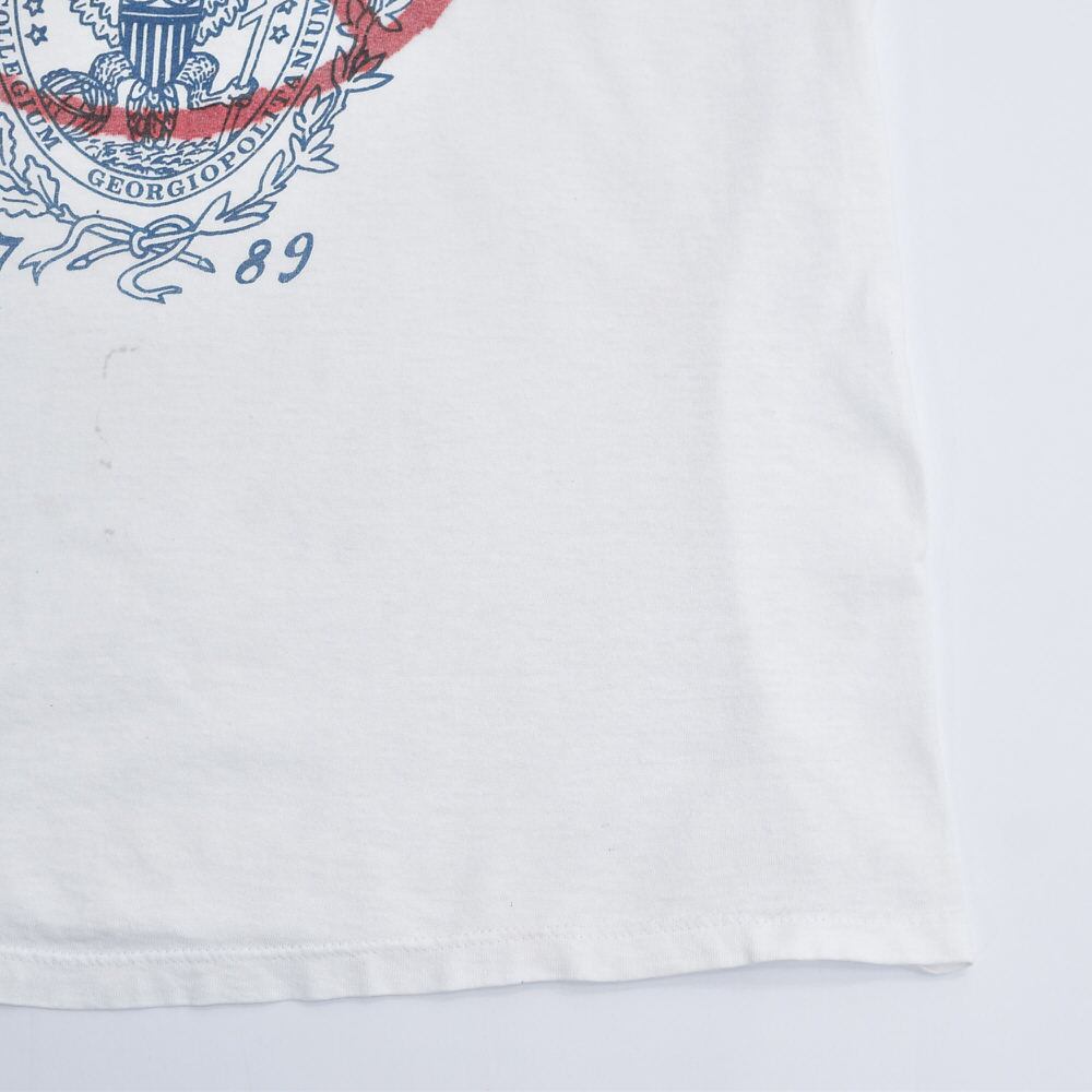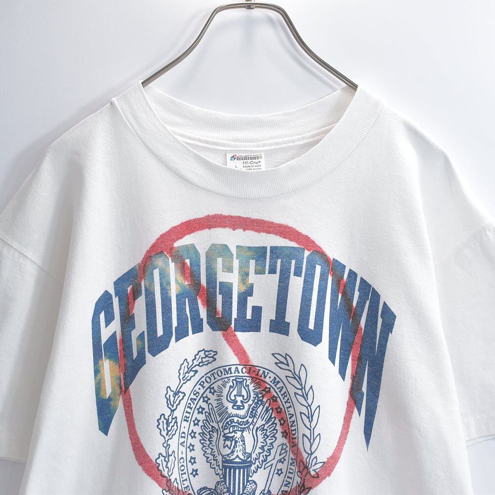 80〜90s USA製 Stedman ステッドマン ジョージタウン大学 カレッジTシャツ NOマーク スプレープリント アートT シングルステッチ ホワイト ヴィンテージ ビンテージ アメリカ古着 メンズLサイズ