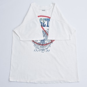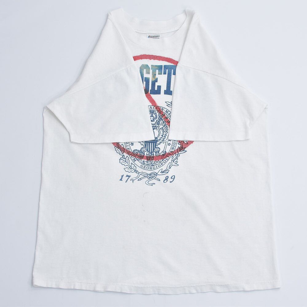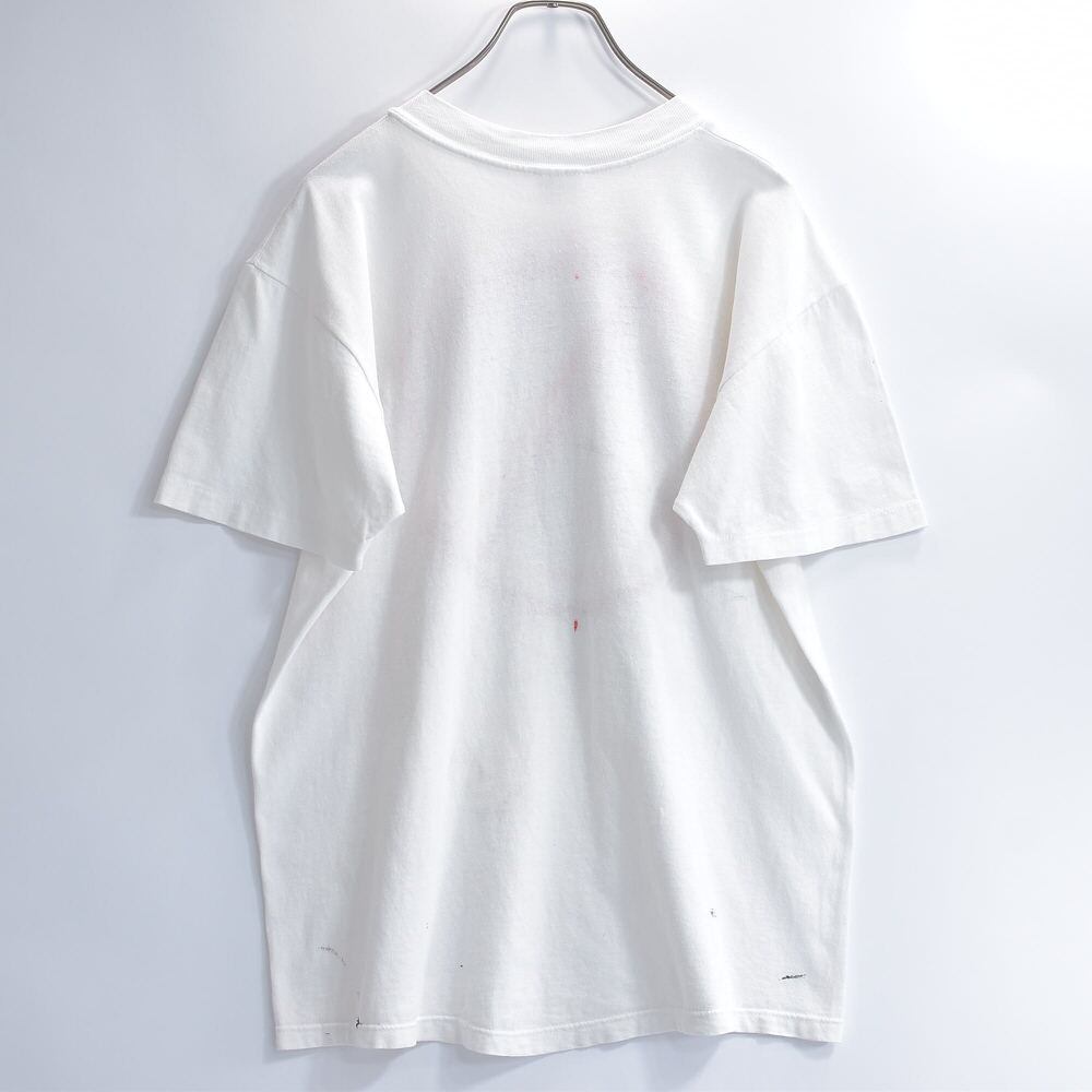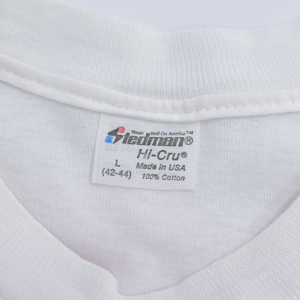 80~90s USA製 Stedman ステッドマン ジョージタウン大学 カレッジTシャツ NOマーク スプレープリント アートT シングルステッチ ホワイト ヴィンテージ ビンテージ アメリカ古着 メンズLサイズ