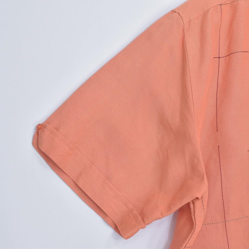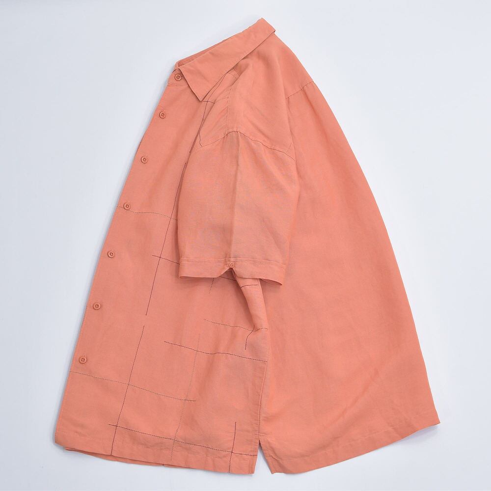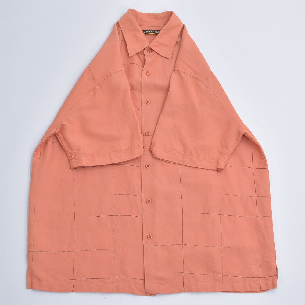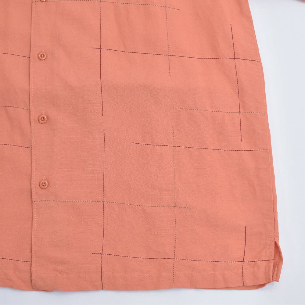 00s CUBAVERA キューバベラ グリッドステッチ デザイン ラミー レーヨン 半袖シャツ Y2K サーモンピンク ヴィンテージ 麻 ビンテージ USA アメリカ古着 メンズLサイズ