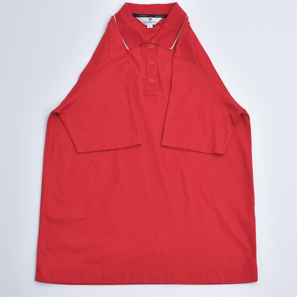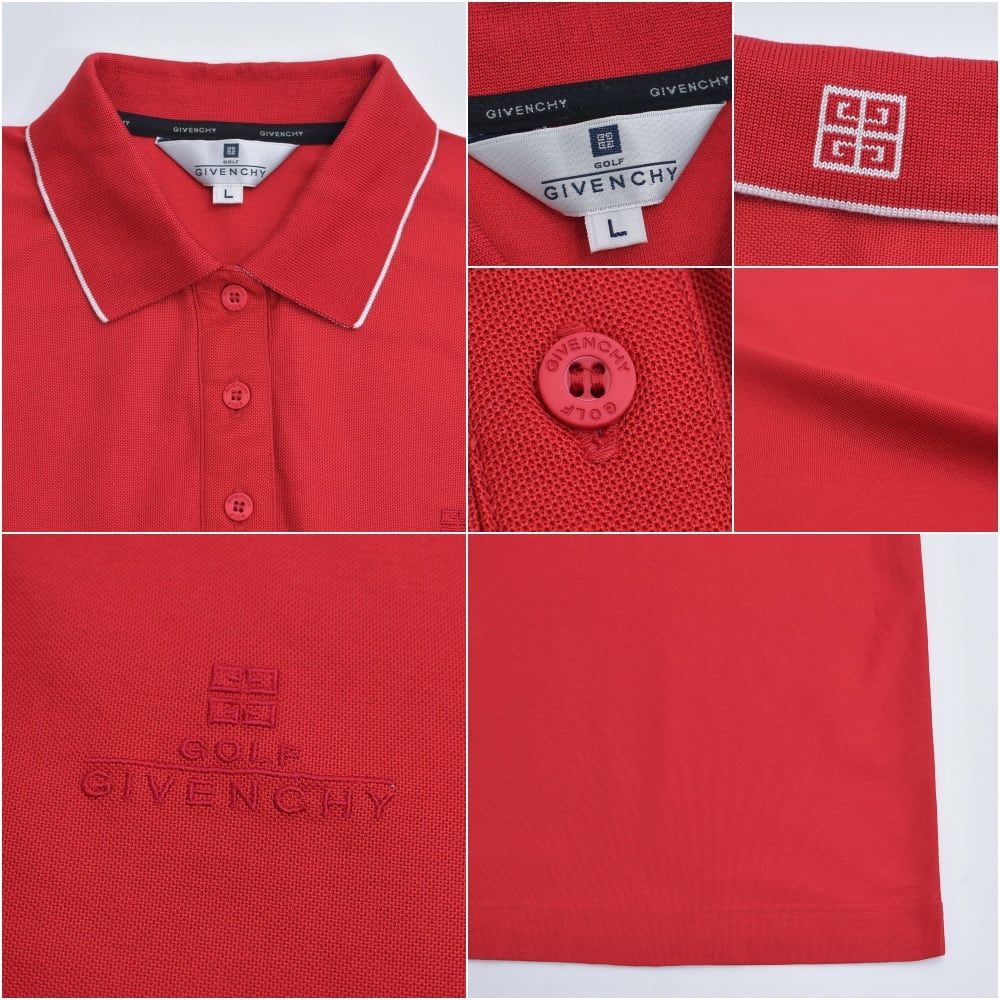 90s~ GIVENCHY GOLF ジバンシィ 刺繍ロゴ 襟ライン デザイン ポロシャツ 鹿の子 赤 レッド ヴィンテージ ラグジュアリー ブランド ビンテージ 古着 レディースS相当