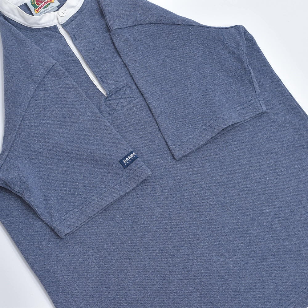 90s カナダ製 BARBARIAN バーバリアン ヘビーウェイトコットン 無地 ソリッド ラグビーシャツ 半袖 ラガーシャツ 霜降りブルー 青 ヴィンテージ ビンテージ USA アメリカ古着 メンズ~M相当