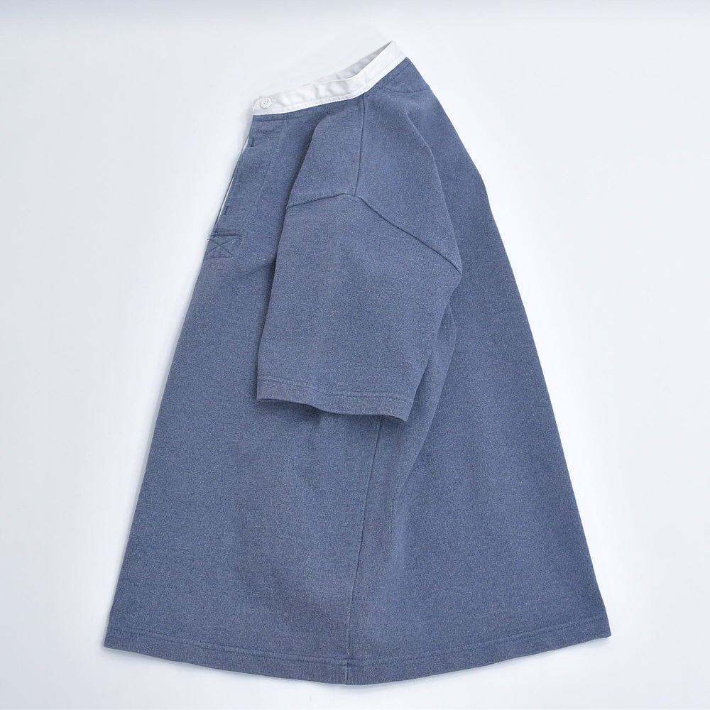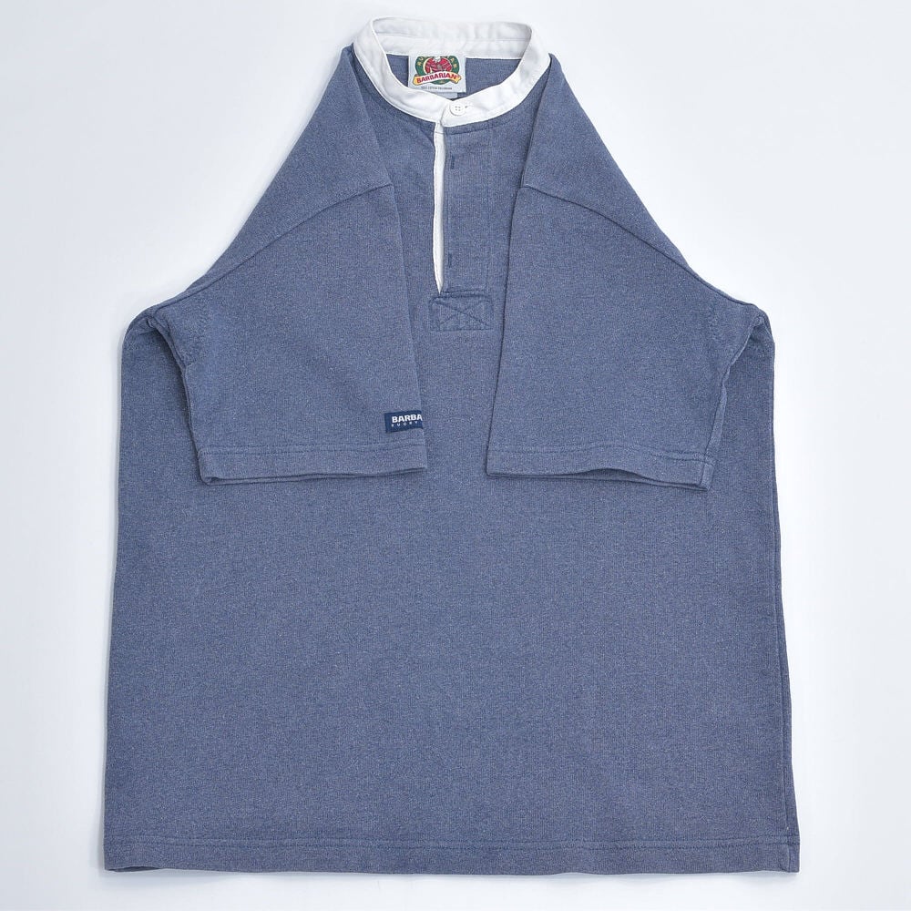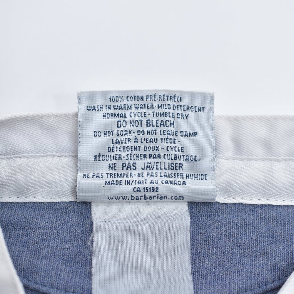 90s カナダ製 BARBARIAN バーバリアン ヘビーウェイトコットン 無地 ソリッド ラグビーシャツ 半袖 ラガーシャツ 霜降りブルー 青 ヴィンテージ ビンテージ USA アメリカ古着 メンズ〜M相当