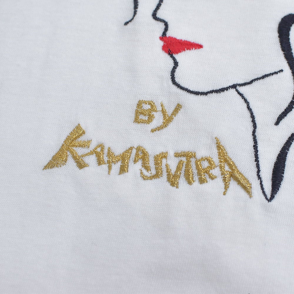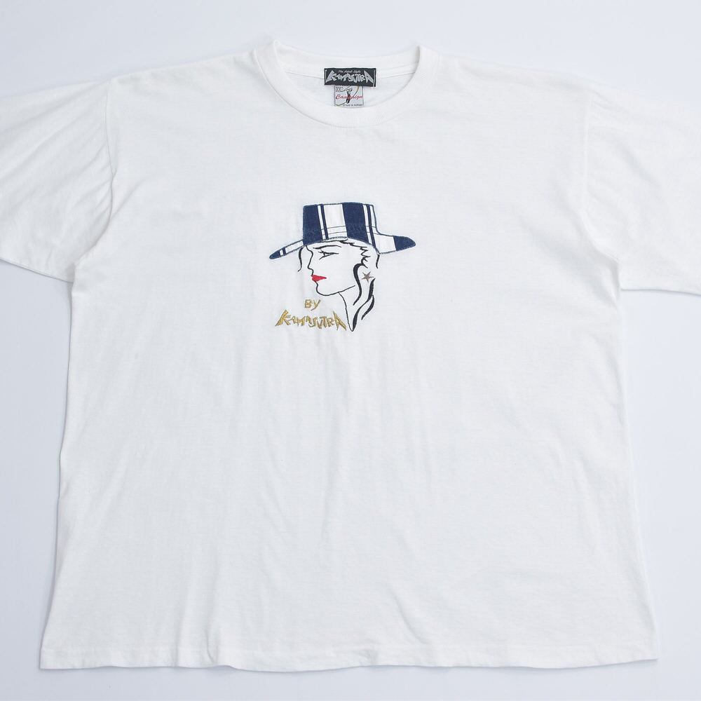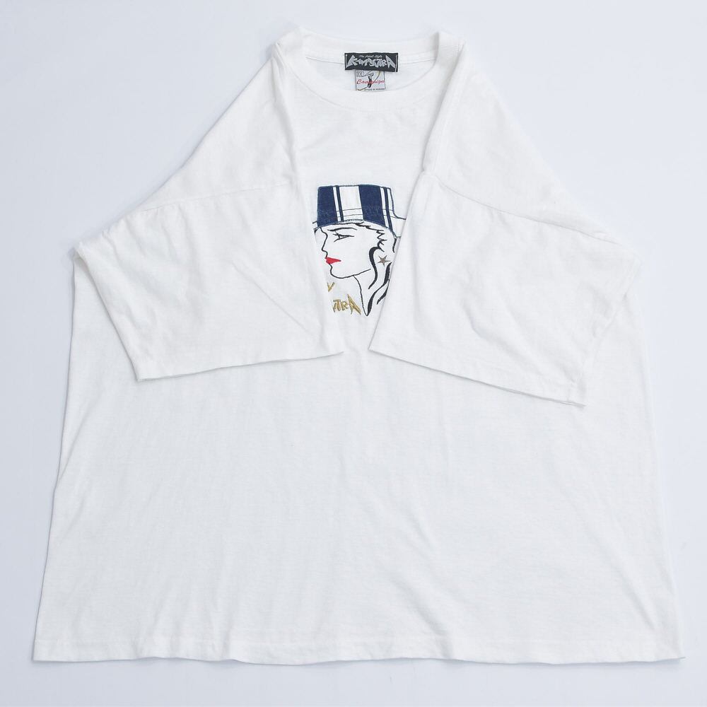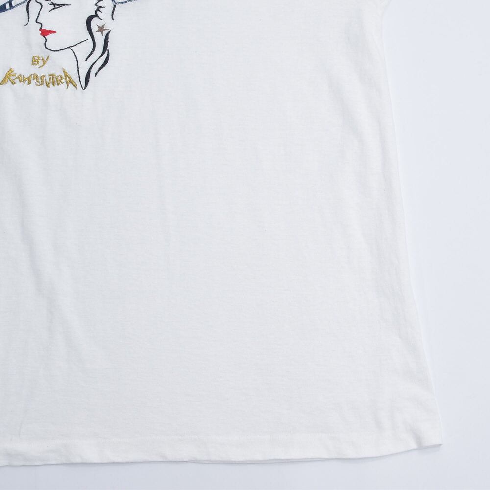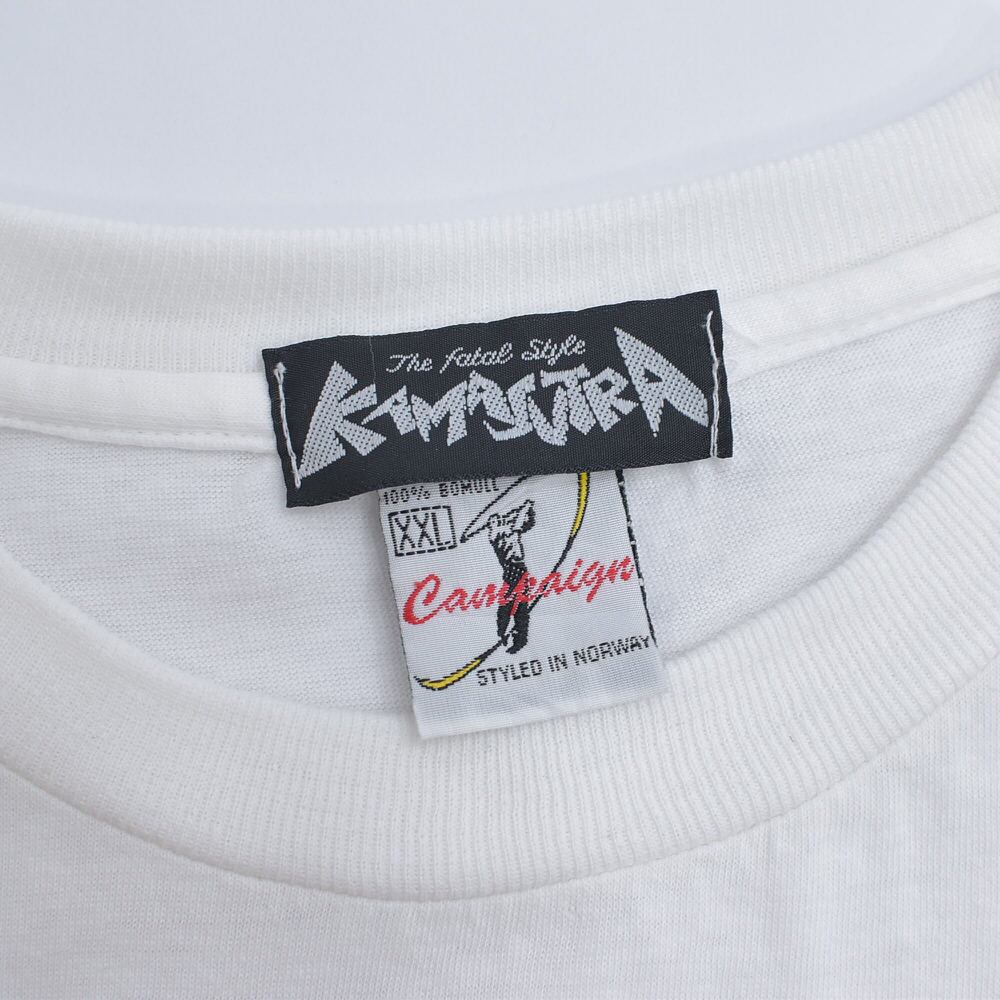 90s Kamasutra カマスートラ 刺繍 ワッペン フェイス アート デザイン Tシャツ カットソー ユーロ ヨーロッパ ヴィンテージ ホワイト ビンテージ 古着 白 メンズXXLサイズ