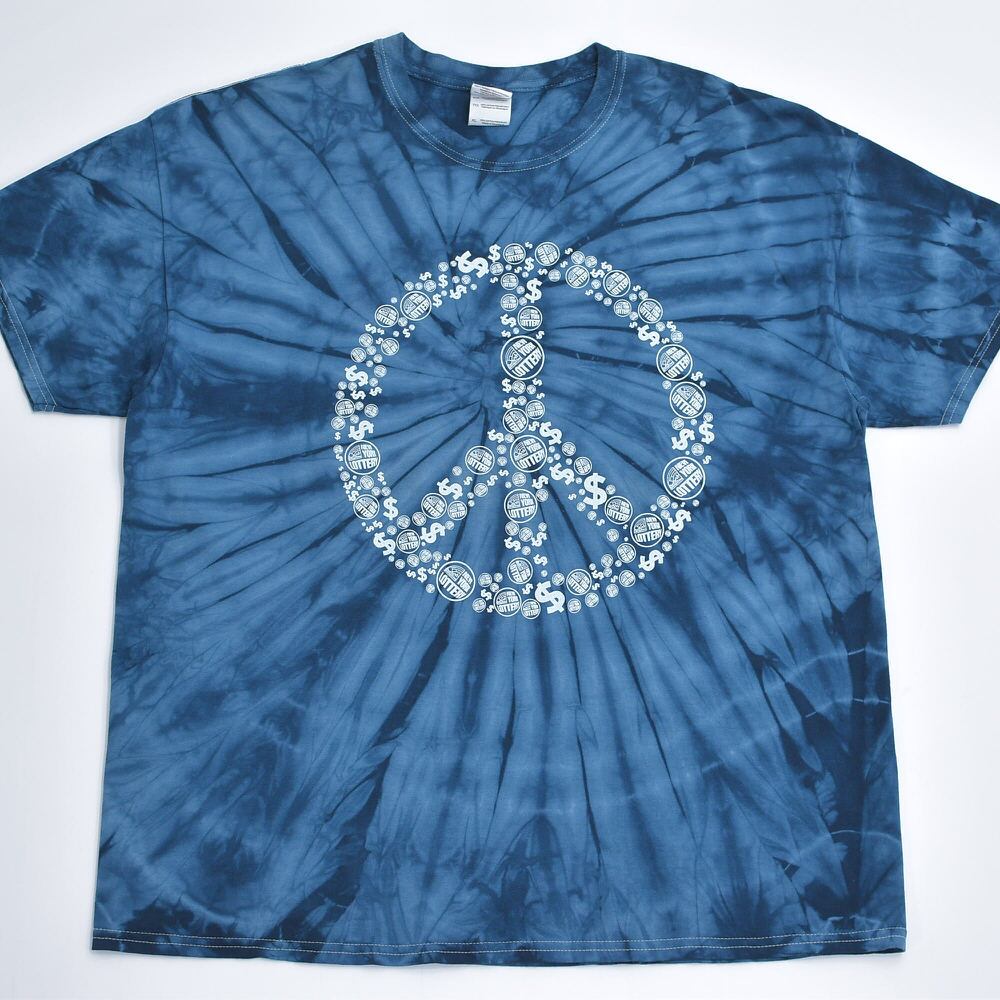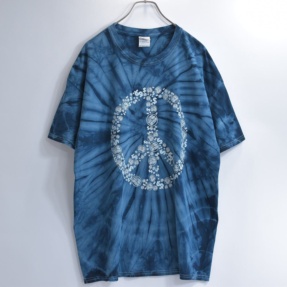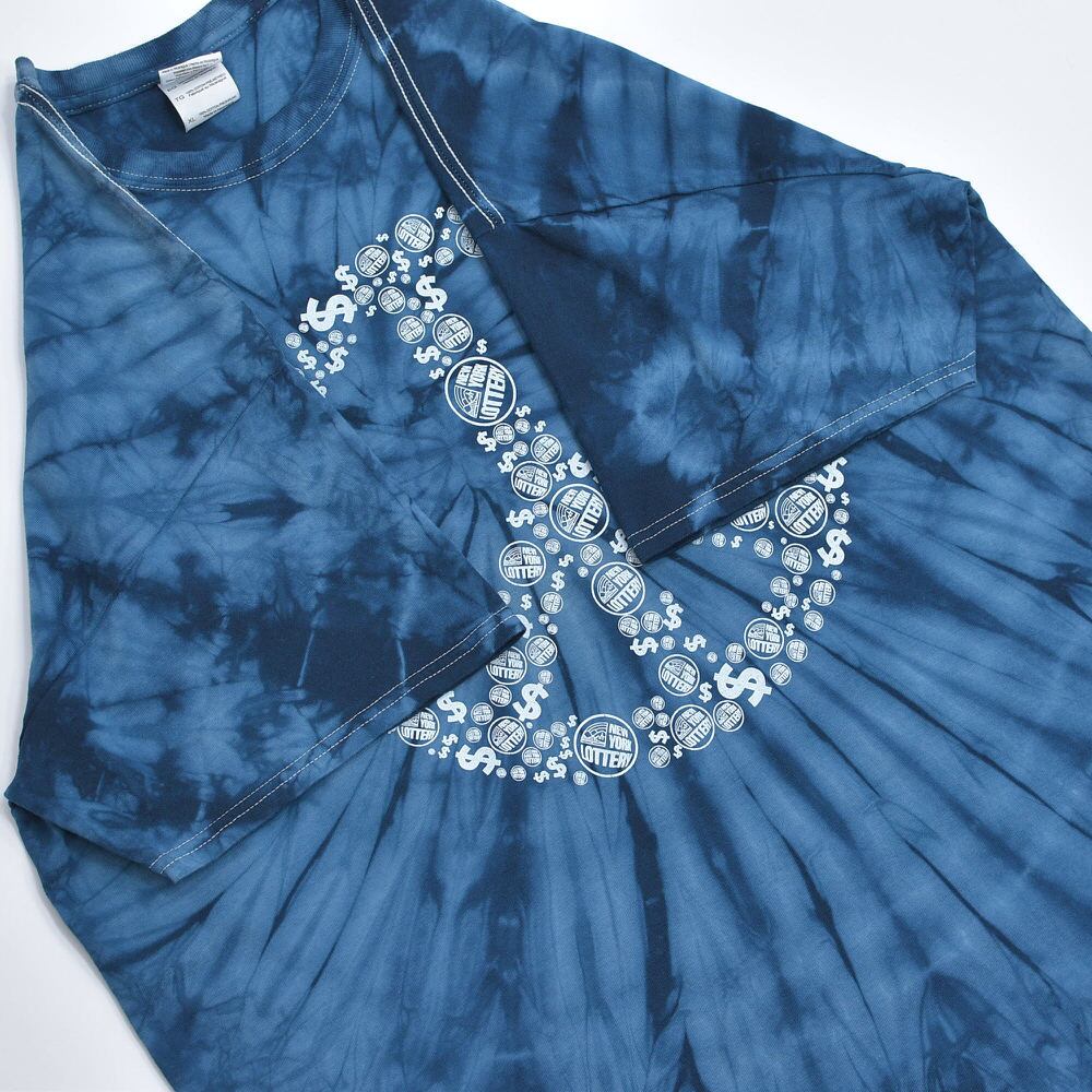 00s GILDAN ギルダン ニューヨークロトリー 宝くじ ピースマーク デザイン タイダイ染め Tシャツ アートT プロモT 販促用 青 ヴィンテージ 渦巻き ビンテージ USA アメリカ古着 メンズXXL相当