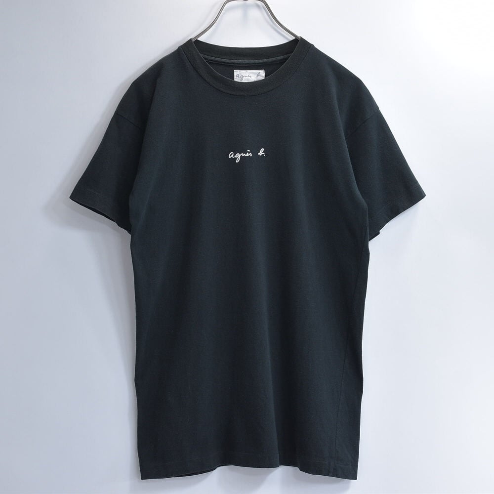 90s フランス製 agnès b. アニエスベー ロゴ刺繍 Tシャツ フレンチカジュアル スクリプトロゴ 半袖 カットソー ブラック 黒 フレンチヴィンテージ ビンテージ ヨーロッパ古着 レディースS〜M相当